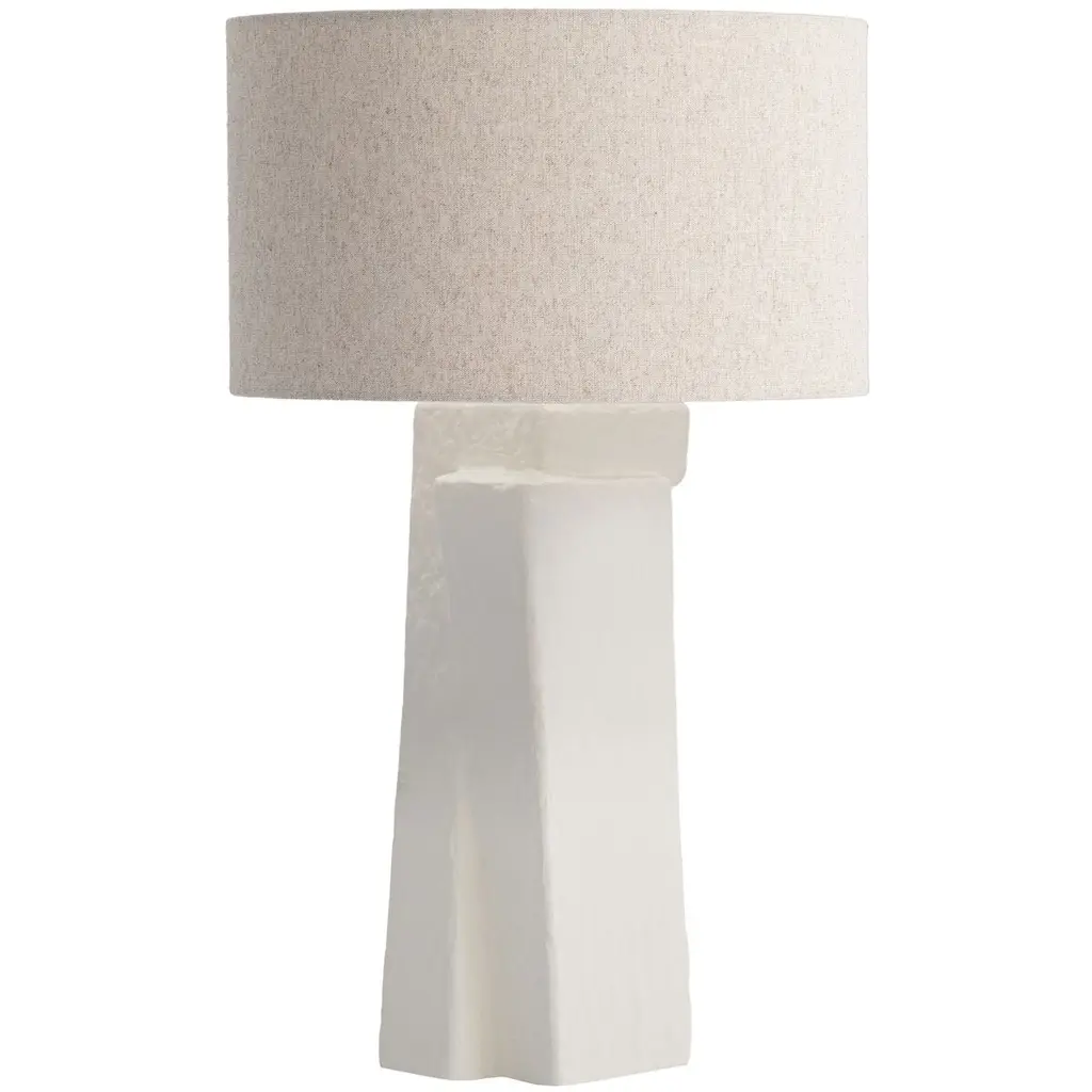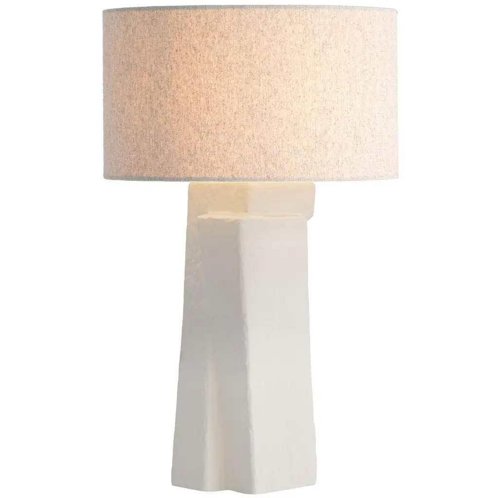 The Jules Table Lamp is a sculptural masterpiece in serene white plaster. Crafted with precision, this table lamp adds an artistic touch to your space. The organic form and neutral hue make it a versatile and sophisticated lighting solution.