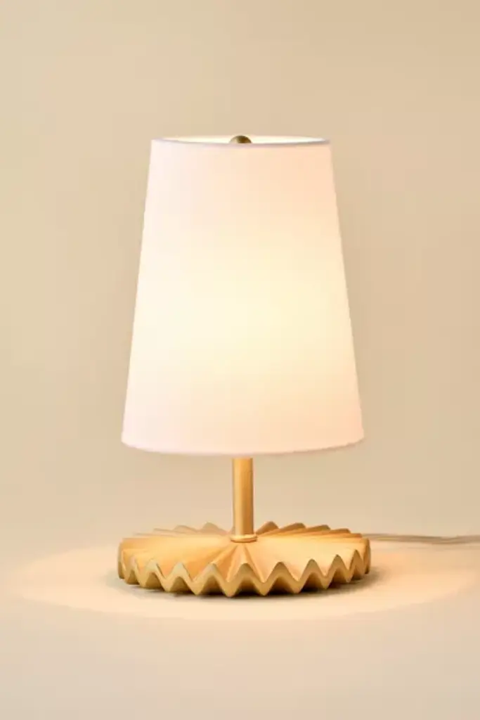 Create a mid-century modern lighting display with this bedside lamp featuring a pleated resin base topped with an extra-tall, tapered drum shade. Available exclusively at Urban Outfitters. **Features** \- Julie Pleated Table Lamp from UO Home’s Julie lighting collection \- Bedside lamp with a resin base in a pleated silhouette \- Tall, tapered fabric lamp shade \- Requires one E12 Type B 25 W bulb - not included \- Plug in; inline switch \- UO exclusive **Content + Care** \- Assembly required - assembly instructions and hardware are included \- Plastic resin, iron, fabric \- Wipe clean \- Imported \- Made in compliance with US electrical standards. To use this item outside of the US, pair with an outlet adapter and voltage converter made specifically for use in your location. **Size** \- Wattage/Voltage: 25W/120V \- Overall dimensions: 6.3"dia x 11"h \- Base dimensions: 4.5"dia x 0.6"h \- Shade dimensions: 4.3"dia x 7.5"h \- Cord length: 7 ft \- Weight: 1.9 lbs \- Shipping package dimensions: 8.7"l x 8.7"w x 13"h \- Shipping package weight: 2.3 lbs