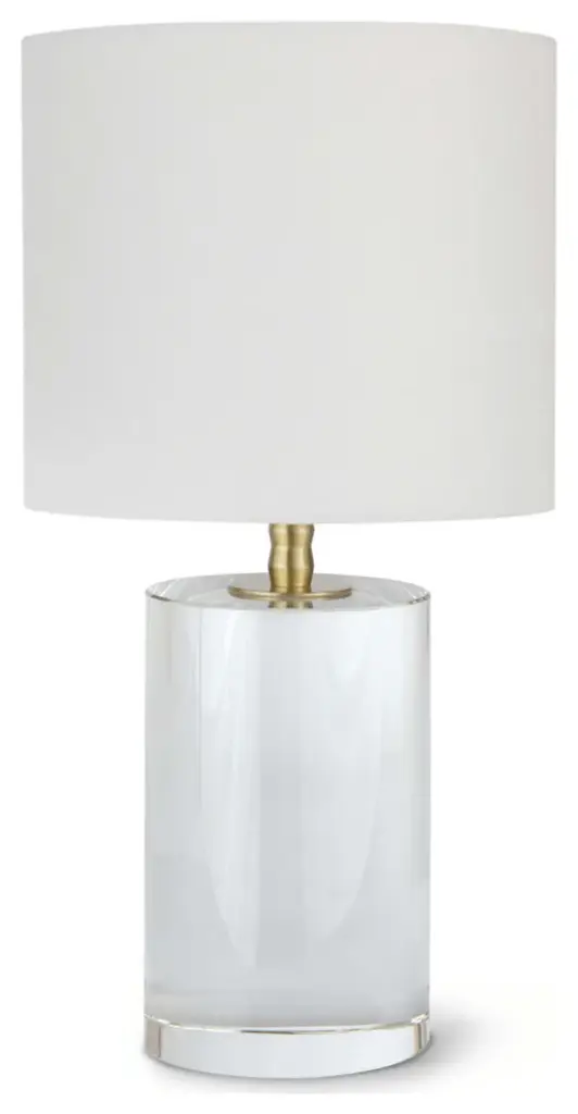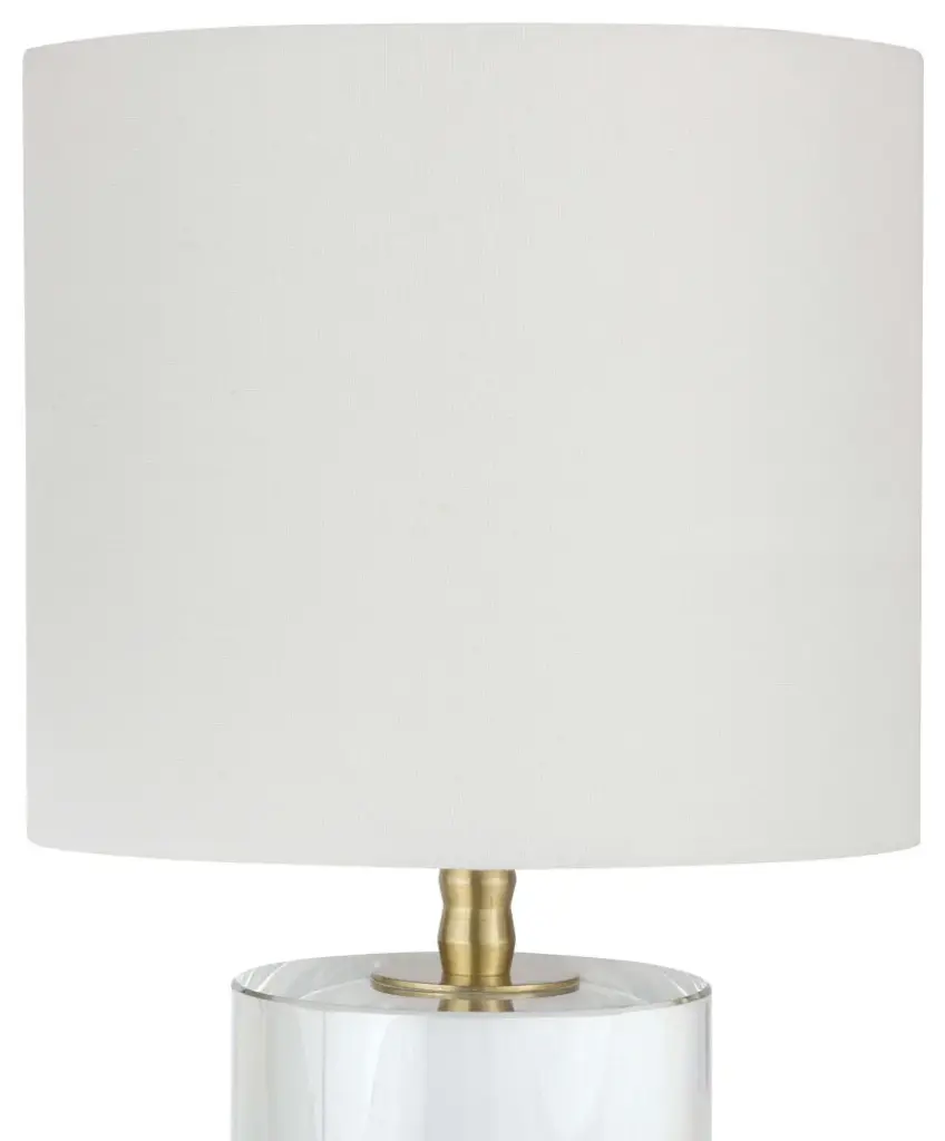 Stunning and elegant, the Juliet Table Lamp is crafted of optical crystal, fitted with natural brass hardware and topped with a natural linen drum shade. This clear and sculptural lamp lends itself to a variety of settings, making it a versatile option for the living or bedroom, or in pairs atop side tables flanked on each side of a sofa.Bulb Type: A Type Medium Base (E26)Wattage: 60 Watt MaxNumber of Bulbs Needed: 1Bulb Included: No