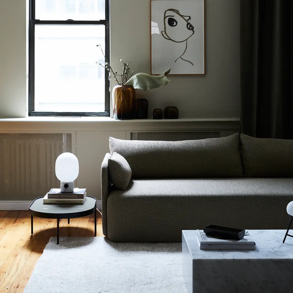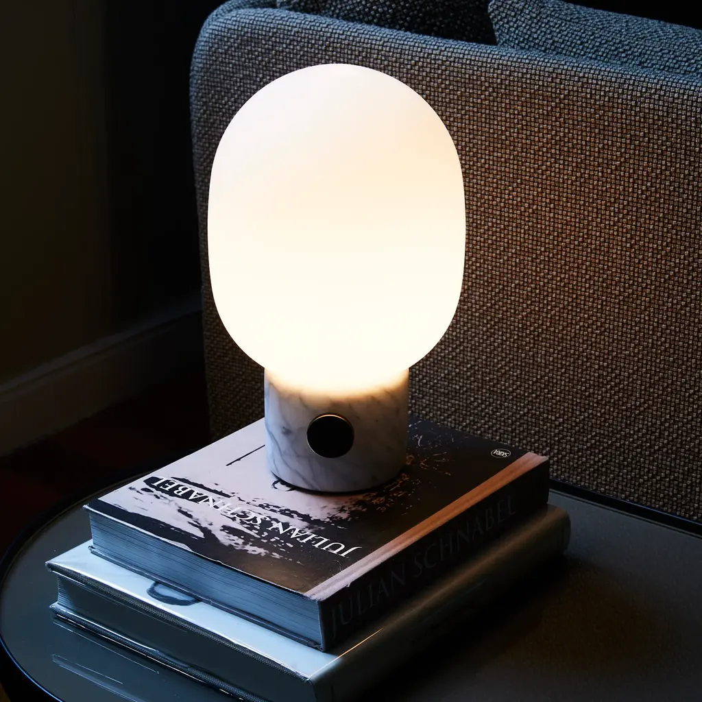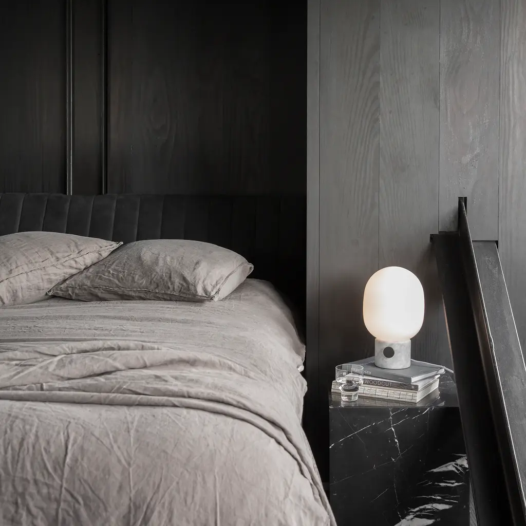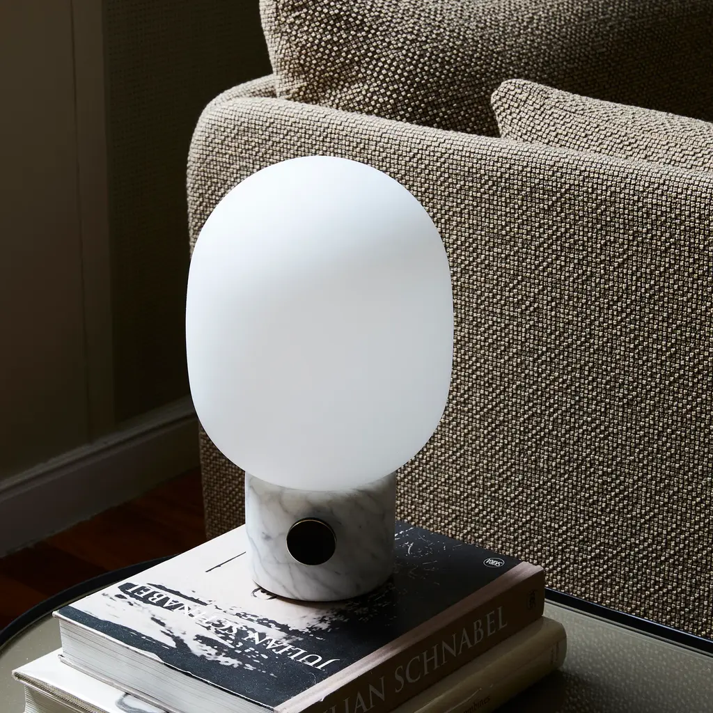 Audo's standout table lamp gets a luxe adaptation in splendid marble and bronzed brass as well as a slightly larger stature than the original. Inspired by old-fashioned oil lamps, Stockholm-based designer Jonas Wagell simplified that antiquarian form into a minimalist beacon that alters the ambience in any setting, with the light level easily adjusted by a twist of the brass knob.