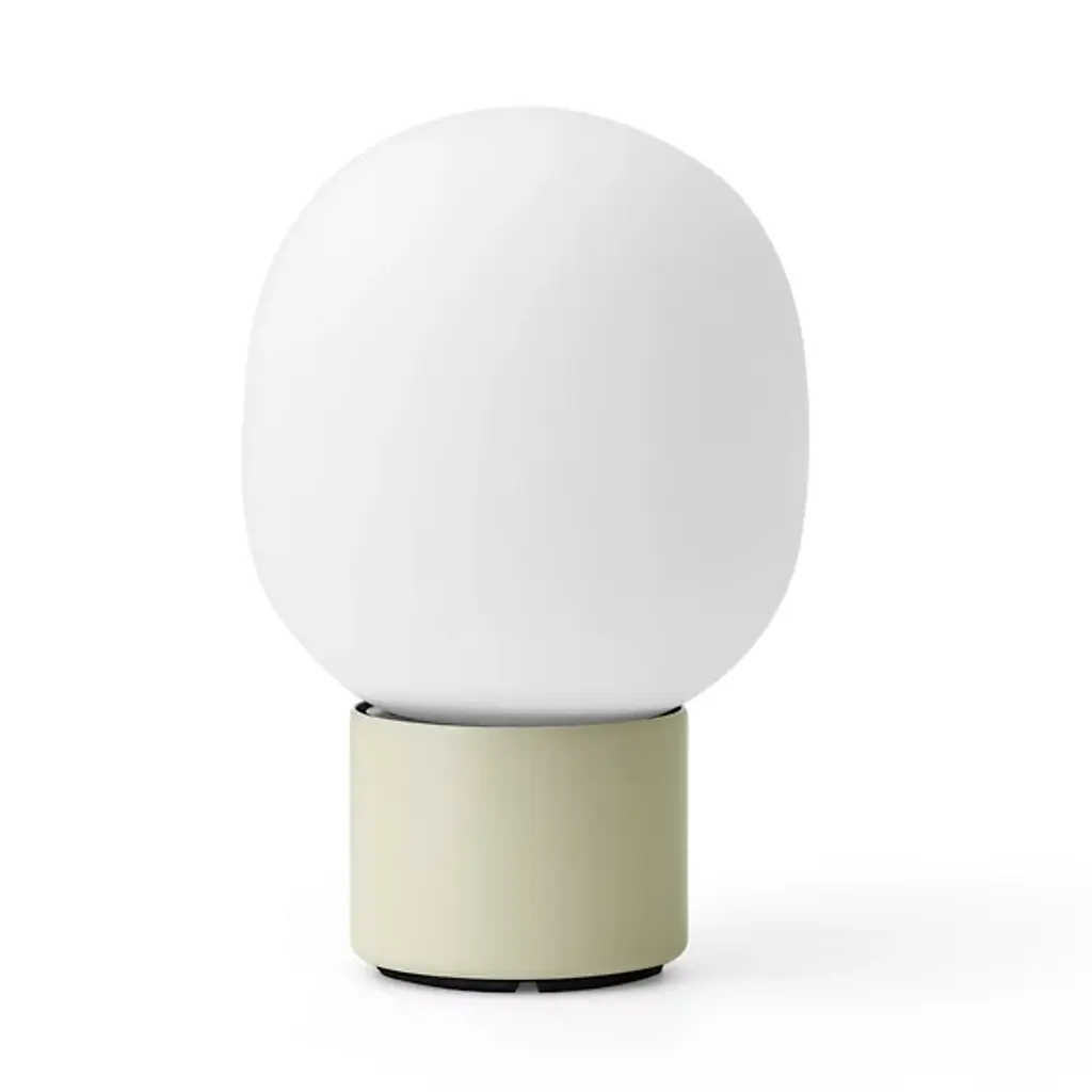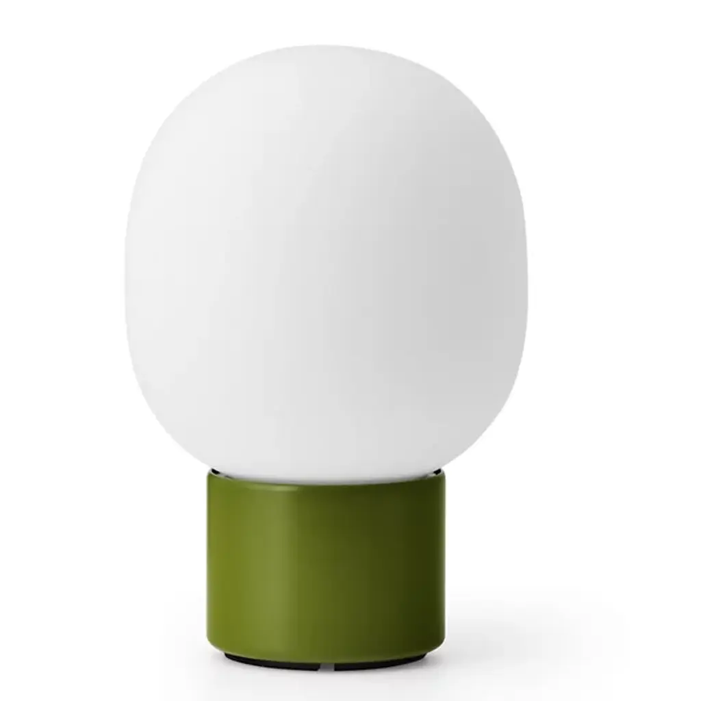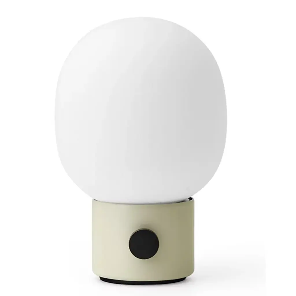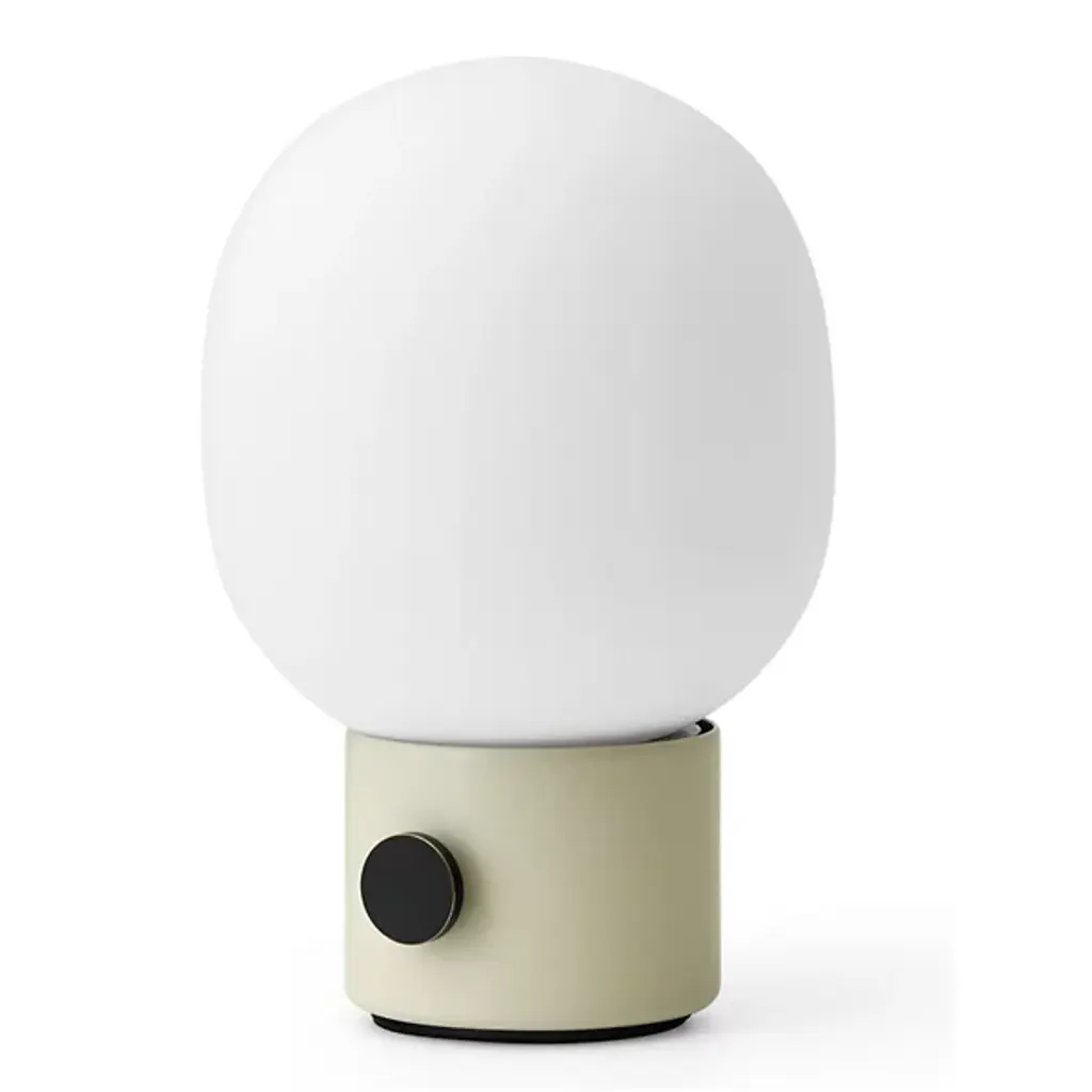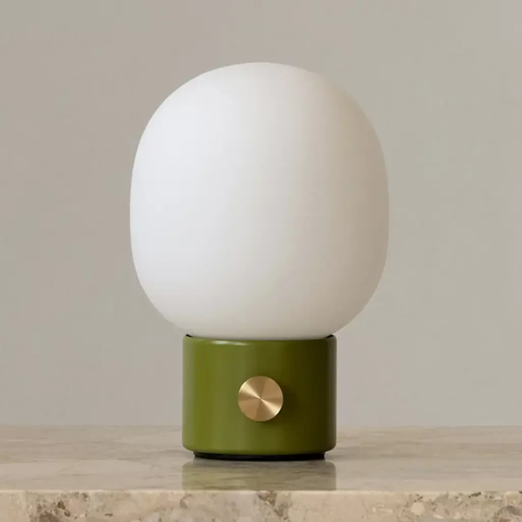 The JWDA Rechargeable LED Table Lamp from Audo Copenhagen, formerly known as Menu, captures the charm, intimacy, and take-anywhere qualities of the traditional oil lamp with minimalist design and honest materials. It's a piece by Jonas Wagell, a designer in pursuit of graphically simple visuals. As the table lamp shows, Wagell's work is ultra-refined yet carries an expressive, friendly personality. This friendliness shows in the table lamp's dimmer, a button-like brass shape inviting one's touch. A solid steel base rests the piece gracefully on the table surface with a low profile. Speaking of low-profile, the base features a concealed USB port and battery, providing 10 hours of light on a single charge. Light comes through with an oil lamp warmth as it glazes the charming egg-like glass shade, radiating a comfortable ambiance.