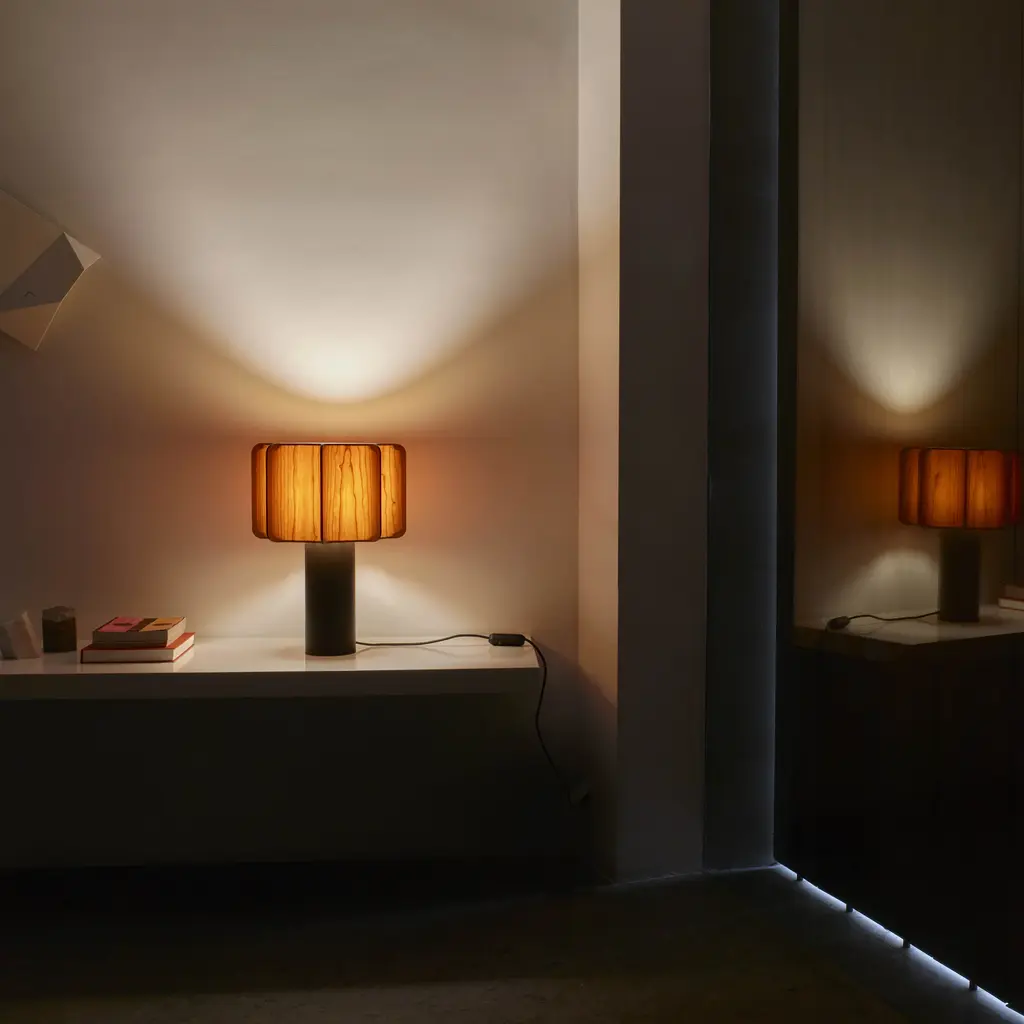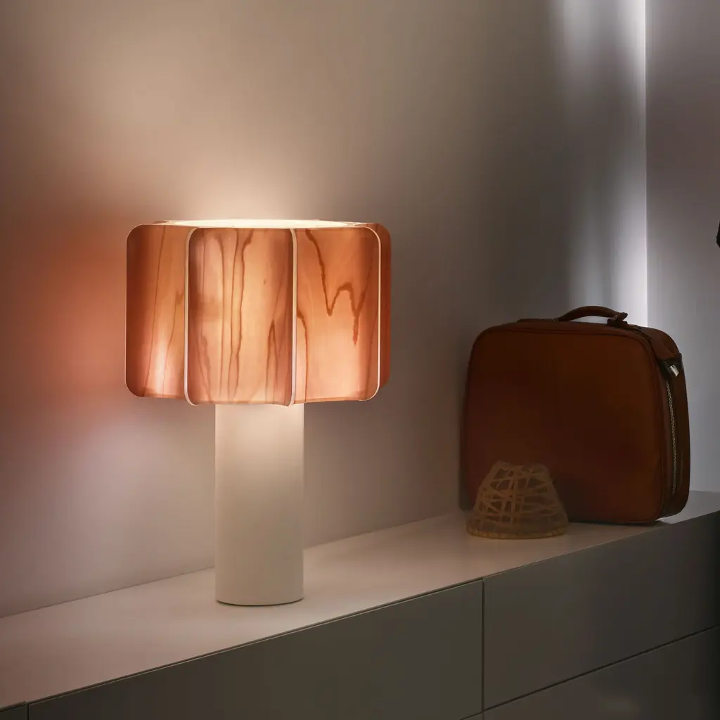 No prickles here! illuminate your space with the unique and timeless charm of the Kactos Table Lamp from LZF. Designed by Ray Power, this nature-inspired lamp boasts a cactus-like silhouette made of carefully arranged wood veneer panels. The light source is perfectly encased within an acrylic frame, casting a beautiful and warm glow. Highlights Photographic reproductions of the veneer can not be taken as a guideline to the actual color. Please use real color swatches for tone matching. LZF will not accept any reclaims based on selections made using photographic reproductions.Since wood is a natural material, gradual changes in tone may occur over time. Furthermore, if the lamps have been purchased at different times, there will be differences in color and tone, particularly in the light colored veneers.
