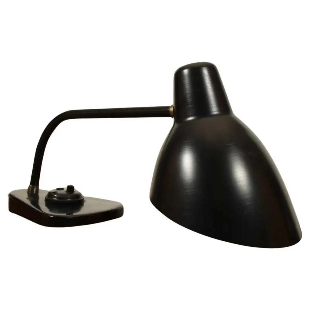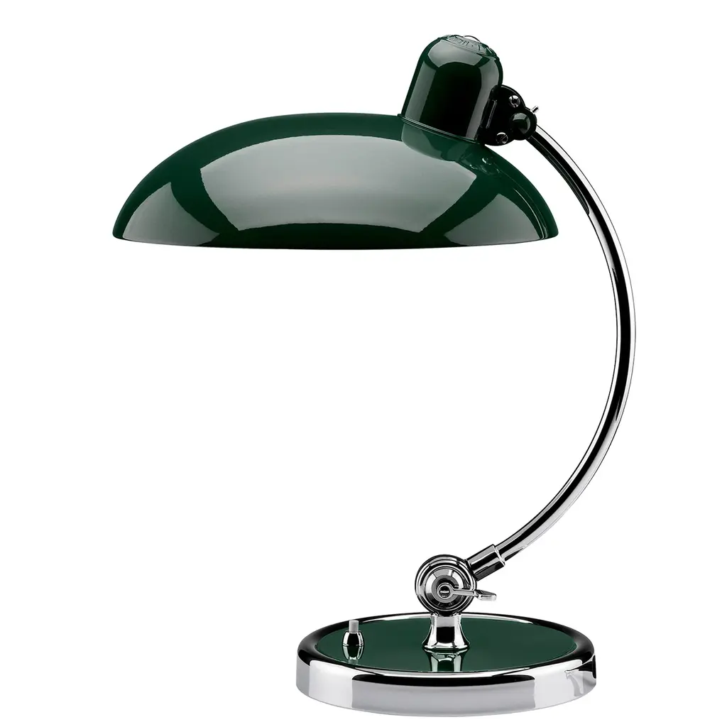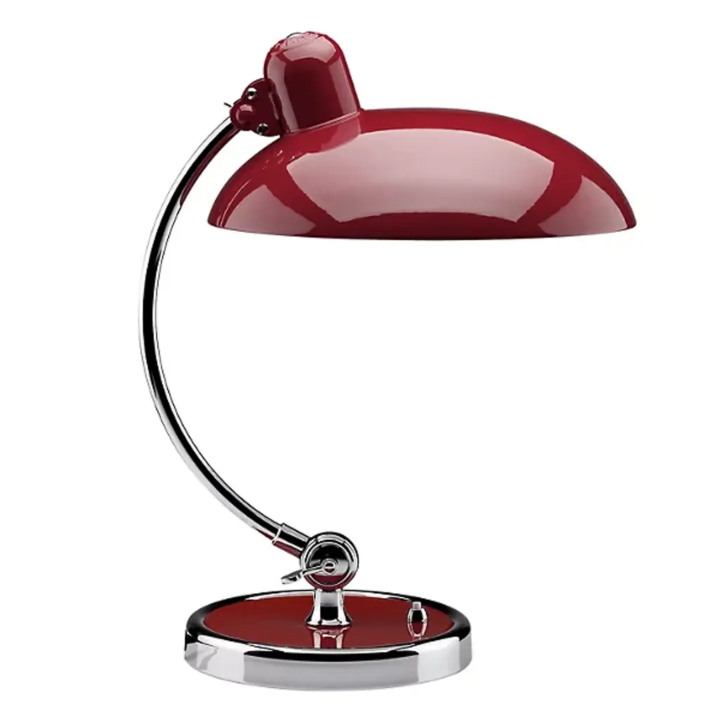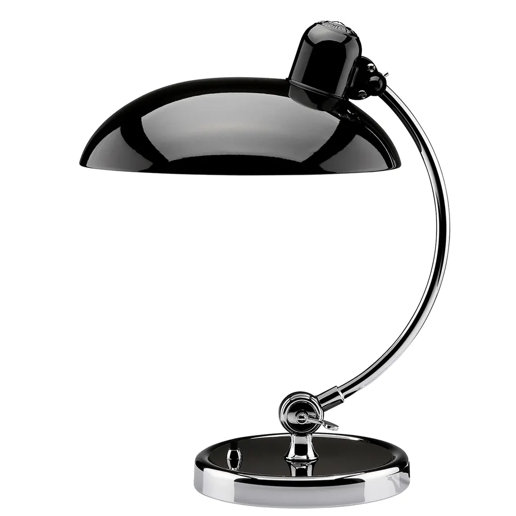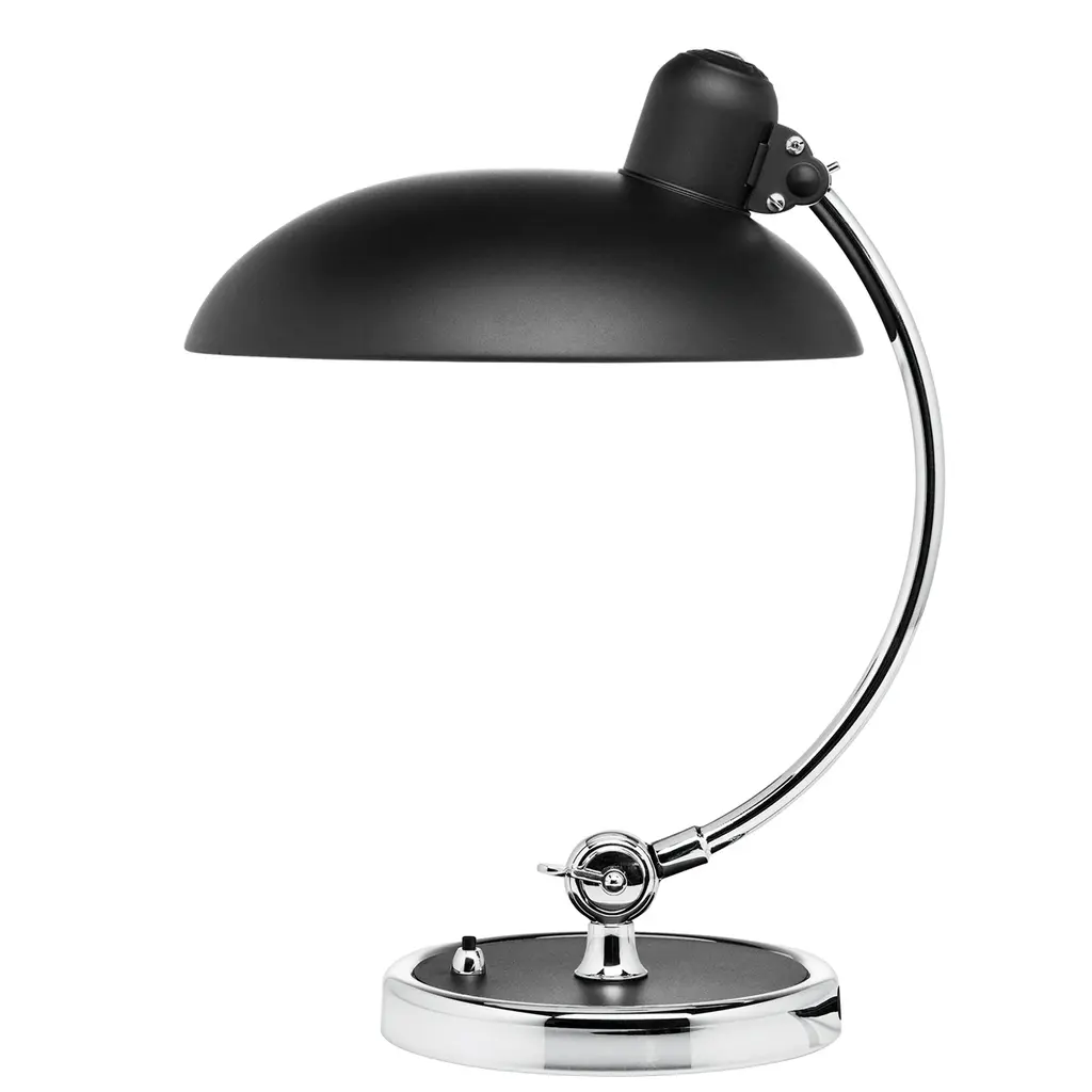 An elegant result of combined geometric shapes, the Kaiser Idell Luxus Table Lamp from Fritz Hansen is widely recognized as a shining symbol of Bauhaus design. Graceful and uncluttered, this lamp features precise engineering for ease of use. With a tiltable shade to direct light as needed, this table lamp is ideal for at home work spaces and spacious office desktops alike. Highlights