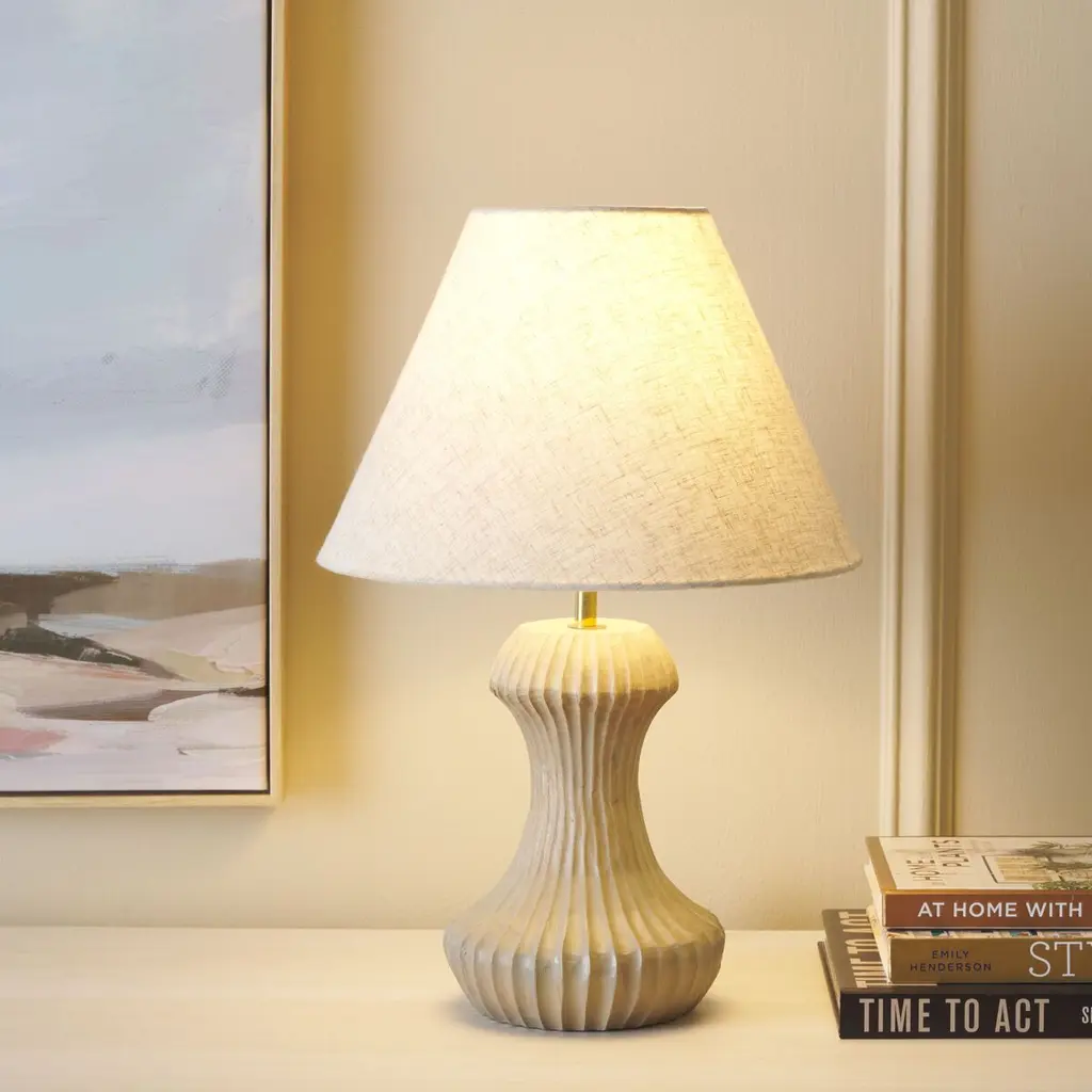 Elevate your space with the Kaius Table Lamp, a delicate fusion of wood and metal with a fabric shade that casts a warm, inviting glow. This lamp features elegant curves and a timeless design that melds seamlessly with various interior styles. Whether placed on a bedside table, a study desk, or nestled in the living room, the Cosmea Table Lamp is a versatile addition to your home, providing both function and a touch of sophistication.