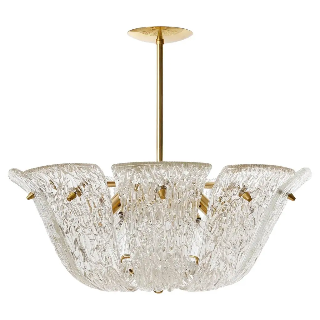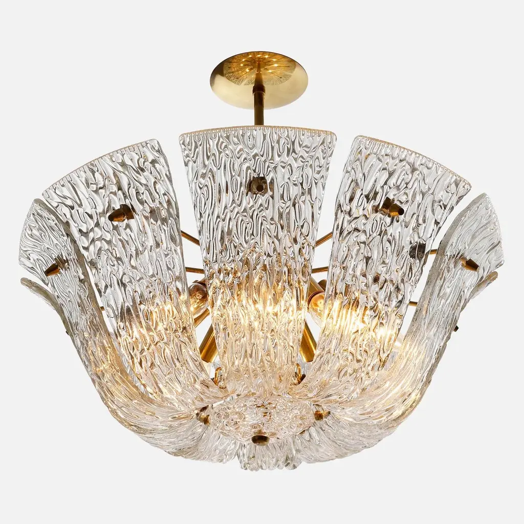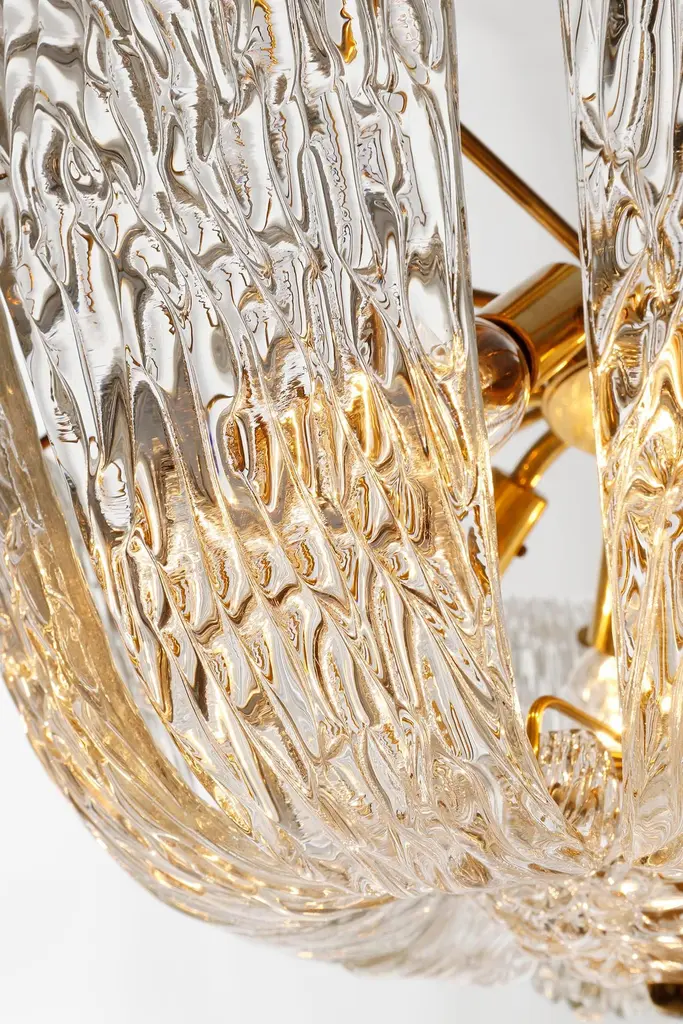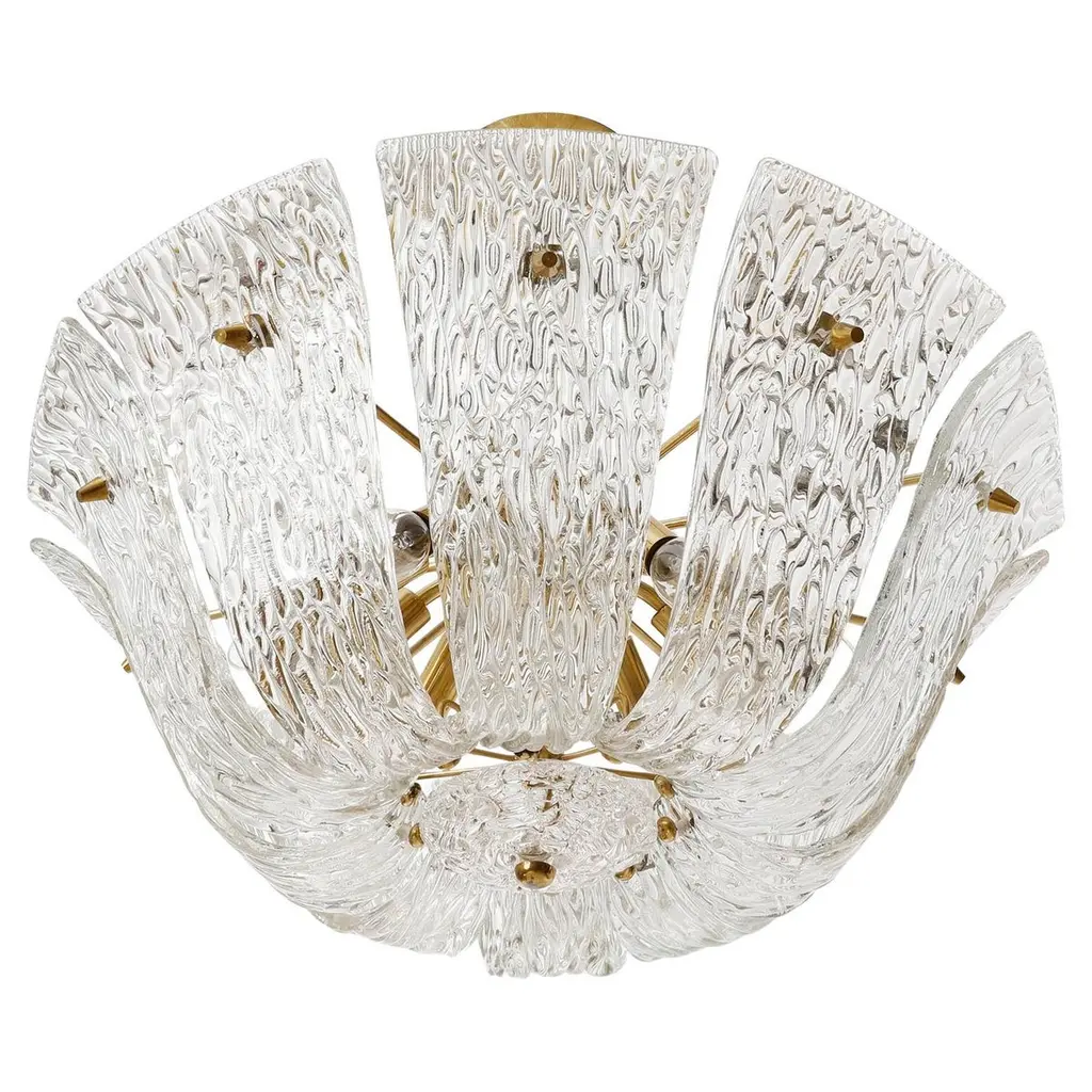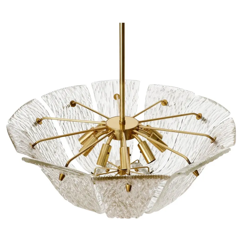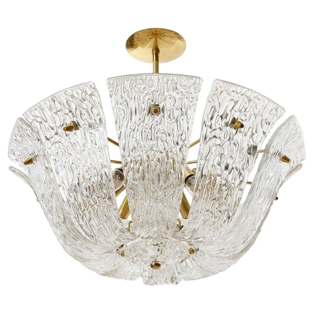 Kalmar Chandelier Or Flush Mount Light Brass Curved Textured Glass, 1960, 1 Of 3