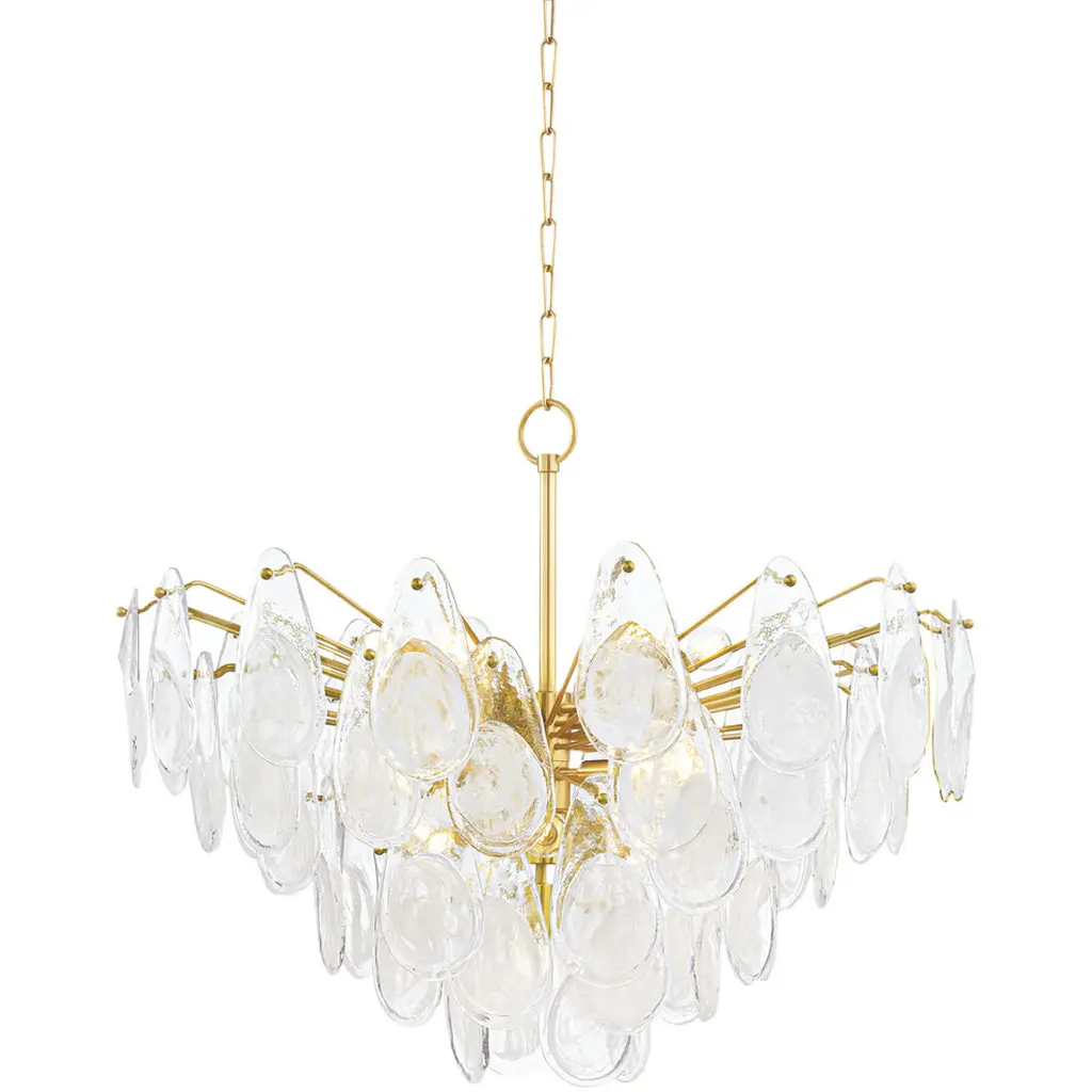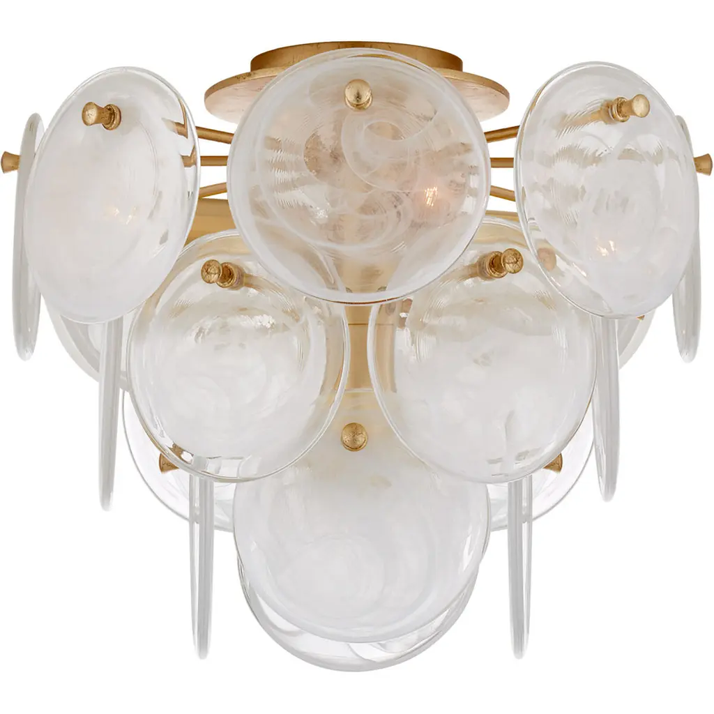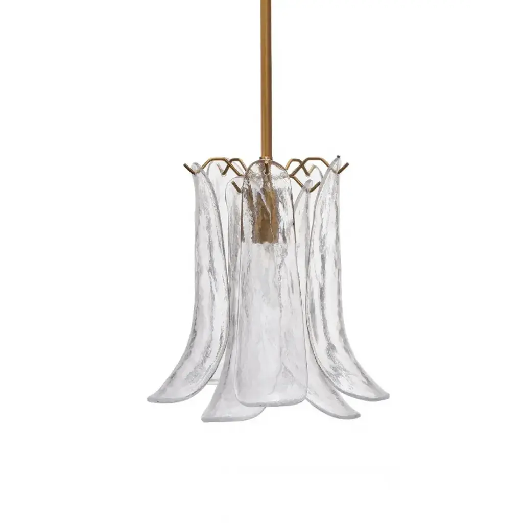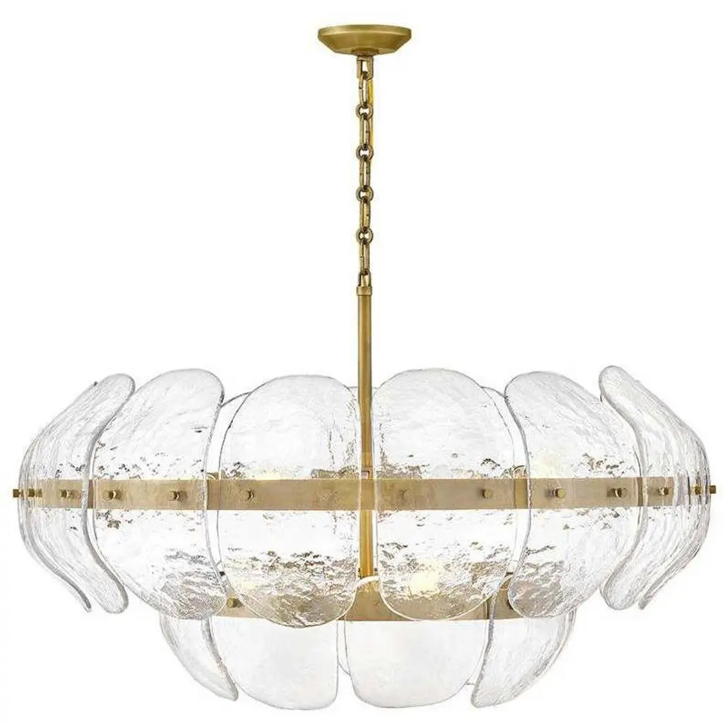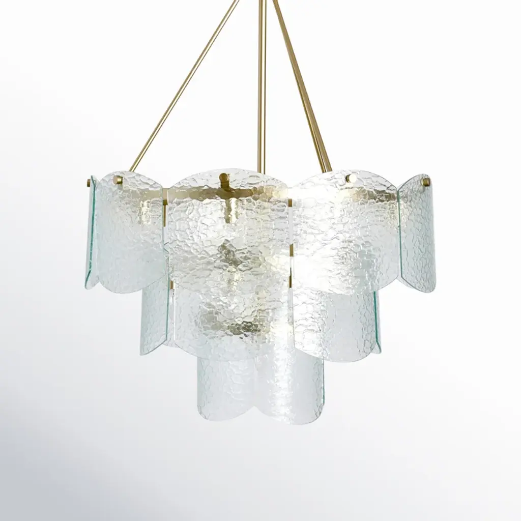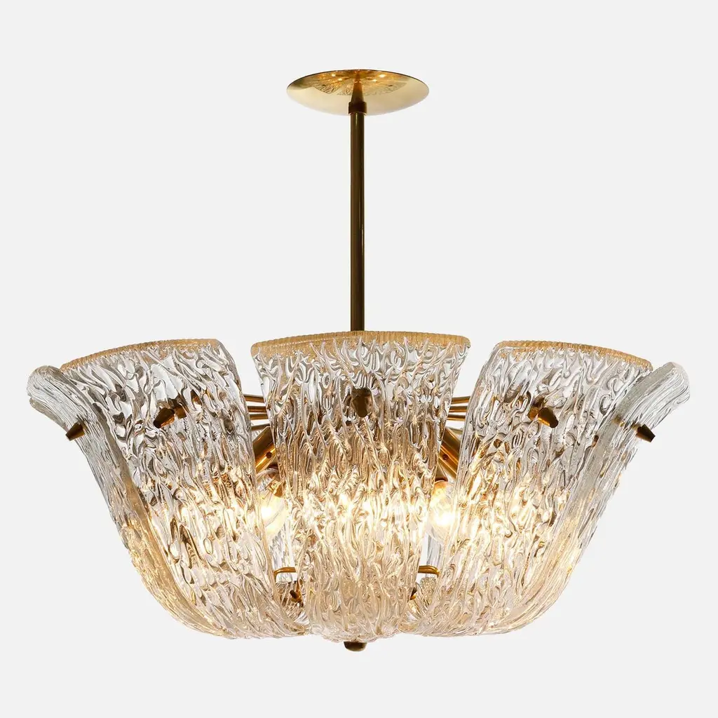 Kalmar Chandelier Or Flush Mount Light Brass Curved Textured Glass, 1960, 1 Of 3