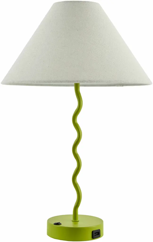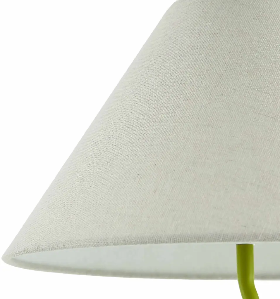 Collection: Kamyanyets Colors: Green, White, Translucent Material: Body: Iron / Base: Iron / Shade (Outside): Linen / Shade (Inside): Linen Styles: Transitional,Traditional Made In: China Lighting Type: Accent Table Lighting Base: Iron Base Color: Green Shade Material: Linen, Linen Shade Color: White, White Cord Length: 5' Switch Type: Rocker Number of Bulbs: 1 Socket Type: E-26 Bulb Wattage: 40W