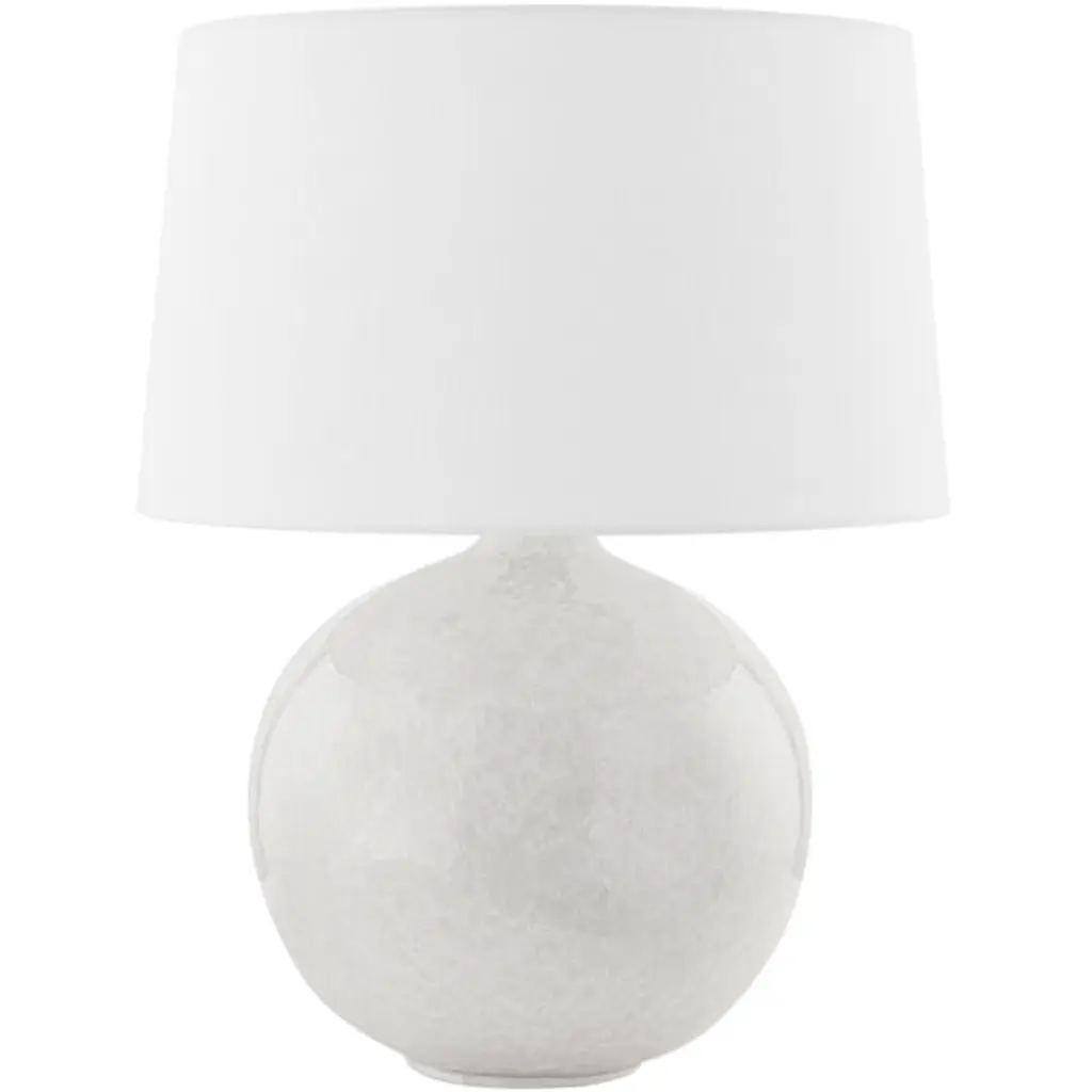 Classic features make Karina a fan favorite. From the monochromatic palette to the simple silhouette, this table lamp will work in any space. The ceramic form features a reactive glaze, lending movement to the finish. Topped with a white linen shade.