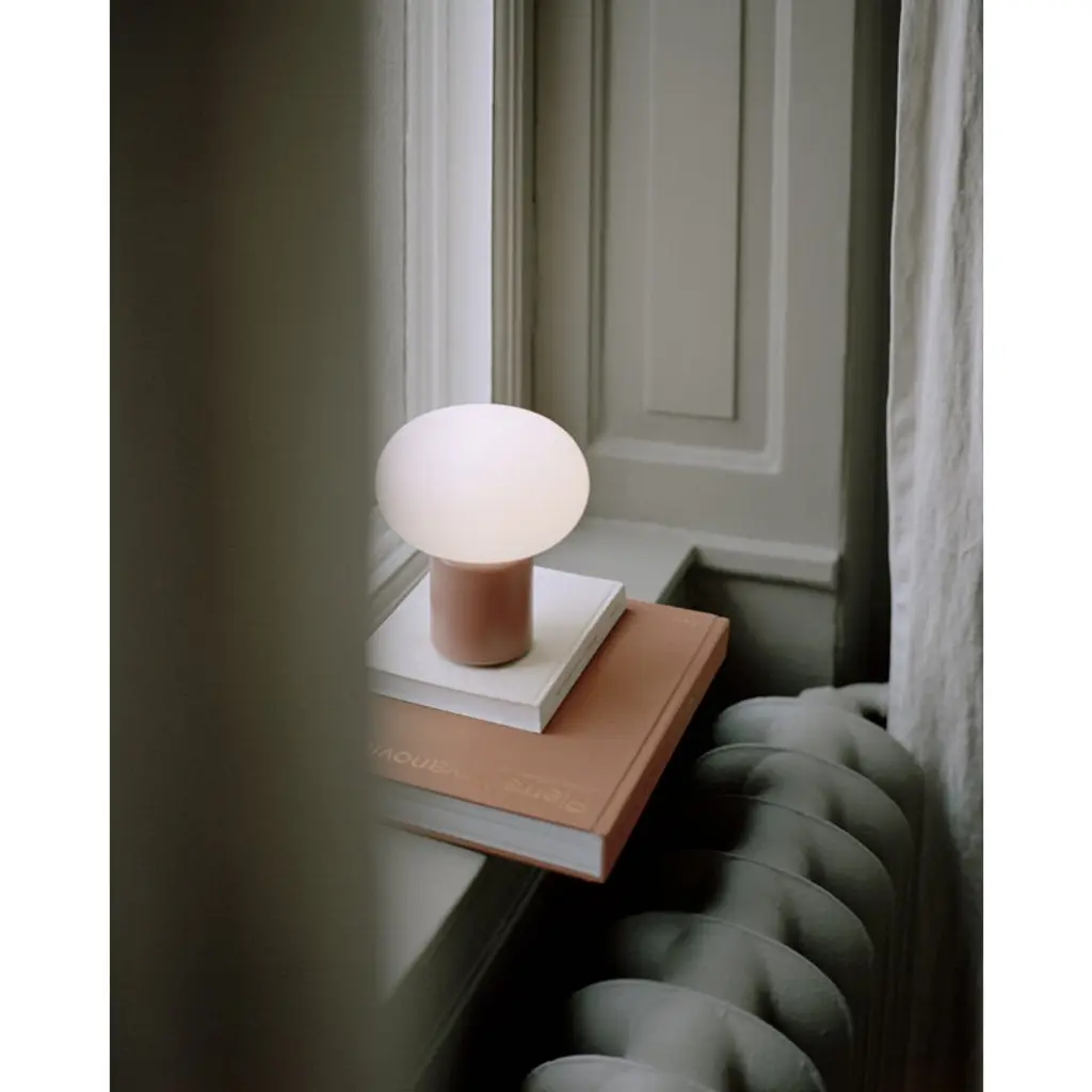 The Karl-Johan table lamp by New Works plays with a combination of a robust base and an oval-shaped opal glass dome. Designer Signe Hytte found the inspiration for the soft curves of Karl-Johan while searching for wild mushrooms in an autumn forest. And yes, one has to admit that the shape of the lamp undeniably brings to mind a mushroom. The poetic appearance and gentle light of Karl-Johan will complement any bedroom or add an elegant touch to the living room – but there's no need to choose the final location, as the cordless luminaire can be easily moved with you from room to room! The battery will last for up to 22 hours on a single charge.