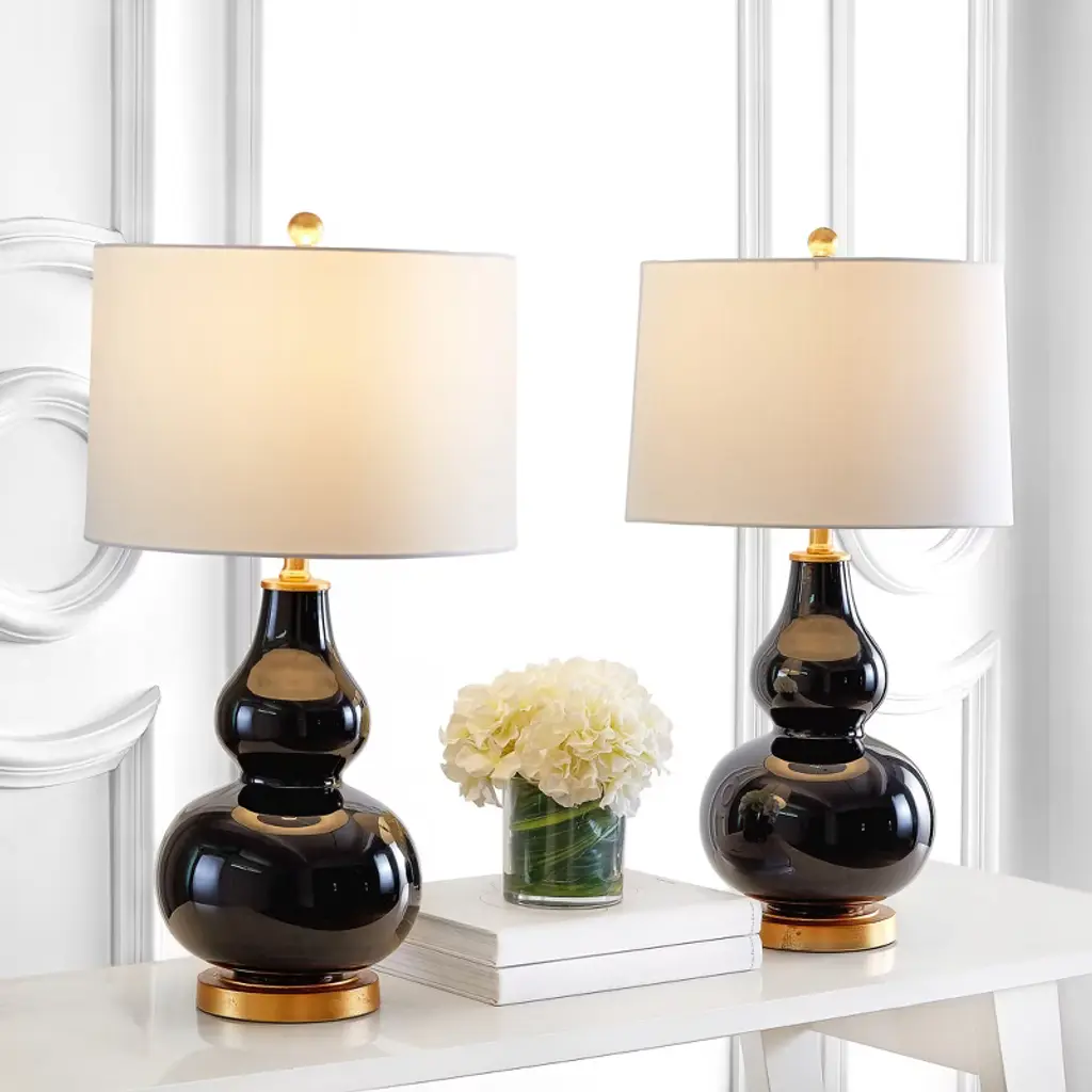 Illuminate your space with the exquisite Karlen table lamp set, a perfect blend of modern design and classic elegance. Standing at 28.5 inches, these black and gold lamps combine sleek glass with sturdy iron to create a striking visual impact. Ideal for any setting, the Karlen set adds sophistication to living rooms, bedrooms, or offices. The black base contrasts beautifully with the gold accents, offering a timeless appeal that suits any decor. Whether you're reading a book or setting the mood for a cozy evening, the warm glow from these lamps will enhance your environment. Elevate your home lighting with the Karlen table lamp set and enjoy a stylish transformation that speaks volumes about your good taste.