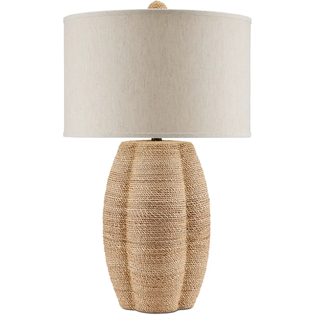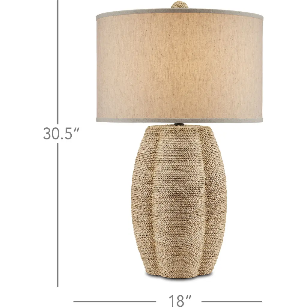 The Karnack Table Lamp has a quatrefoil shape that creates a challenge for those seamlessly wrapping it in abaca rope, but that didn’t stop the talented artisans who created it from doing just that. The body that serves as the structure for the rope is made of terracotta. A round rope-wrapped finial fastens the natural linen shade to this abaca rope lamp that was inspired by statement pieces among our accessories.