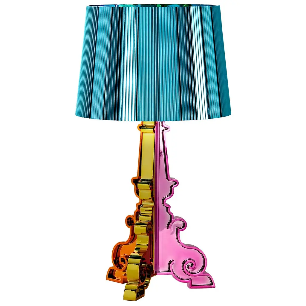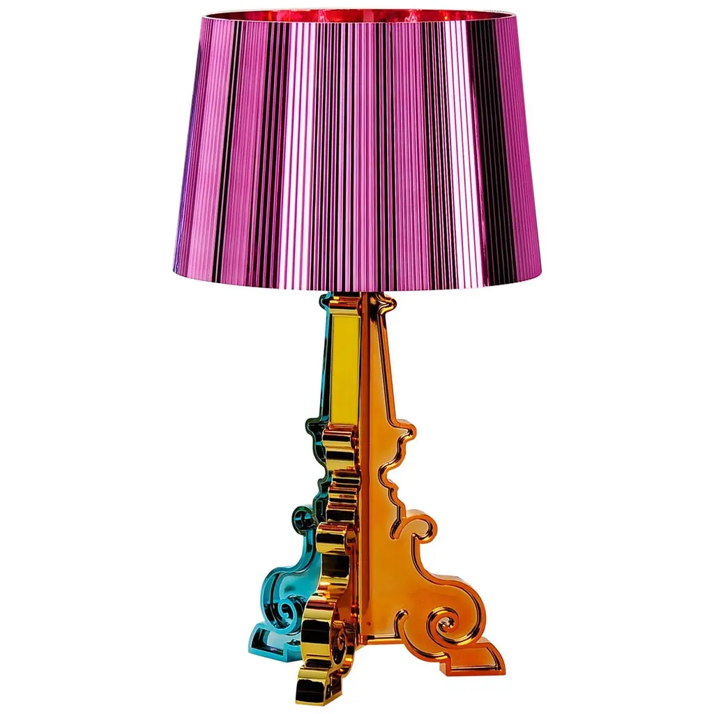 A lamp with an inimitable style, Bourgie is one of Kartell’s best sellers, skillfully combining classic style, richness and tradition with innovation and irony. The baroque style base is composed of three interconnecting decorated layers, while the large lampshade is made with a pleated effect, to create a myriad play of reflections when the lamp is turned on. The lamp shade's unique attachment system makes three different heights possible which can be adjusted according to the desired use: 68, 73 and 78 centimetres. Bourgie becomes a gorgeous decorative desk or table lamp. Thanks to its flexibility and strong communication value, it can be used on a side-table in the living room, to create atmosphere on your nightstand, as a standing sculpture or for reading. Assembly required. Voltage: 120. Not adaptable for other countries. Kelvins: 2700k. Bulb type: E12 Type B, Max 3x28W.