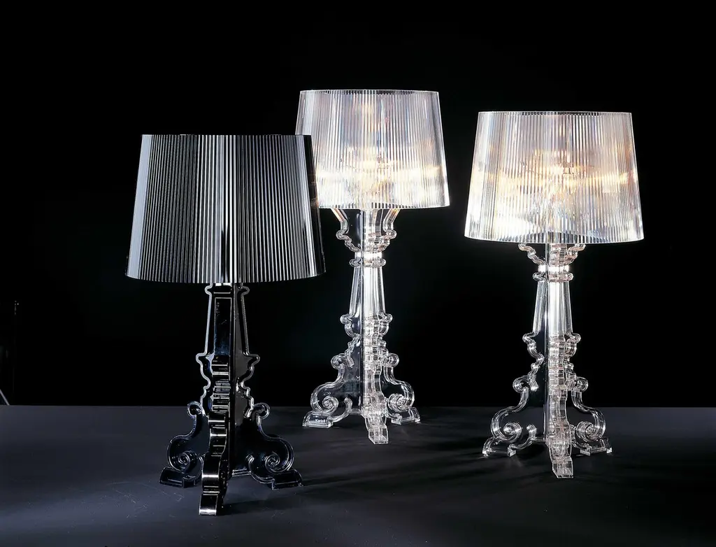 A lamp with an inimitable style, Bourgie is one of Kartell’s best sellers, skillfully combining classic style, richness and tradition with innovation and irony. The baroque style base is composed of three interconnecting decorated layers, while the large lampshade is made with a pleated effect, to create a myriad play of reflections when the lamp is turned on. The lamp shade's unique attachment system makes three different heights possible which can be adjusted according to the desired use: 68, 73 and 78 centimetres. Bourgie becomes a gorgeous decorative desk or table lamp. Thanks to its flexibility and strong communication value, it can be used on a side-table in the living room, to create atmosphere on your nightstand, as a standing sculpture or for reading.Made of: Polycarbonate. Assembly required. Voltage: 120. Not adaptable for other countries. Kelvins: 2700k. Bulb type: E12 Type B, Max 3 x 28W.