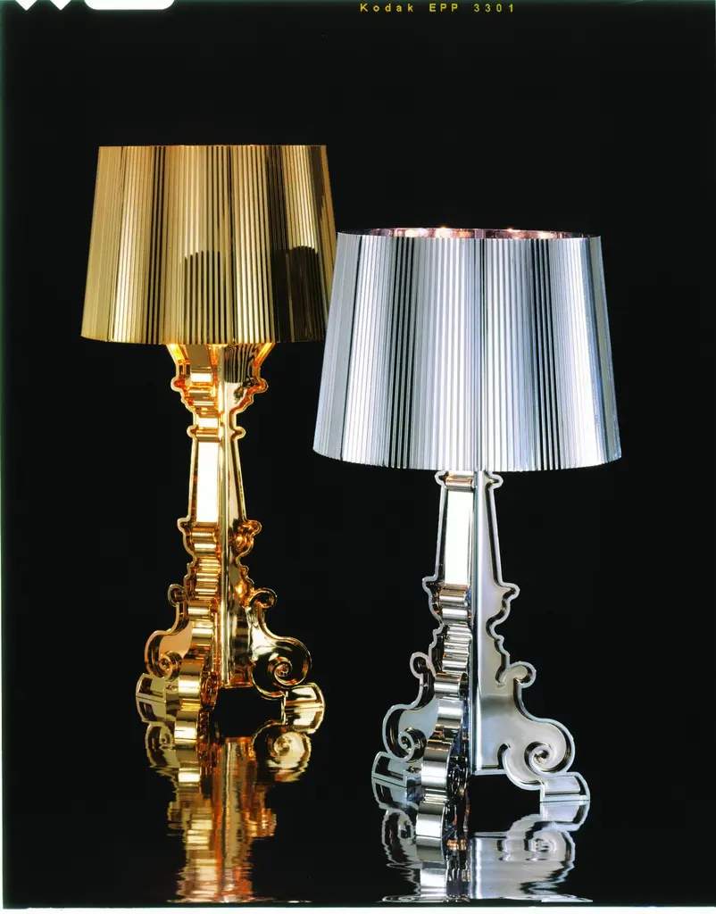 A lamp with an inimitable style, Bourgie is one of Kartell’s best sellers, skillfully combining classic style, richness and tradition with innovation and irony. The baroque style base is composed of three interconnecting decorated layers, while the large lampshade is made with a pleated effect, to create a myriad play of reflections when the lamp is turned on. The lamp shade's unique attachment system makes three different heights possible which can be adjusted according to the desired use: 68, 73 and 78 centimetres. Bourgie becomes a gorgeous decorative desk or table lamp. Thanks to its flexibility and strong communication value, it can be used on a side-table in the living room, to create atmosphere on your nightstand, as a standing sculpture or for reading.Made of: Polycarbonate. Assembly required. Voltage: 120. Not adaptable for other countries. Kelvins: 2700k. Bulb type: E12 Type B, Max 3 x 28W.