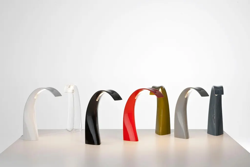 Taj, more than a lamp, is a three-dimensional manifestation, a luminous sculpture, a presence as much at home on our desk as on another piece of furniture. Although it is a table lamp, Taj abandons the articulated, jointed and mechanical stereotype in favour of a simple form serving the practical function for which it is intended. Beautiful either on or off, Taj uses LED technology to optimise and minimise the light source and at the same time it is a new step forward in meeting the corporate technical Challenge producing an object through unique know-how. Taj is produced in the completely naked transparent version.Made of: PMMA. Voltage: 24V dc. Adaptable for other countries. Integrated LED. Kelvins: 2700k. Bulb type: 4.8W LED.