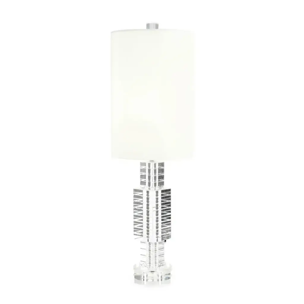 Karter delivers the classic appeal of a glass cylinder table lamp – with a modern edge. Artisans craft its base with a two-tiered stepped design and alternating vertical grooves, creating a dimensional look that captures and plays with the light, from day to night.