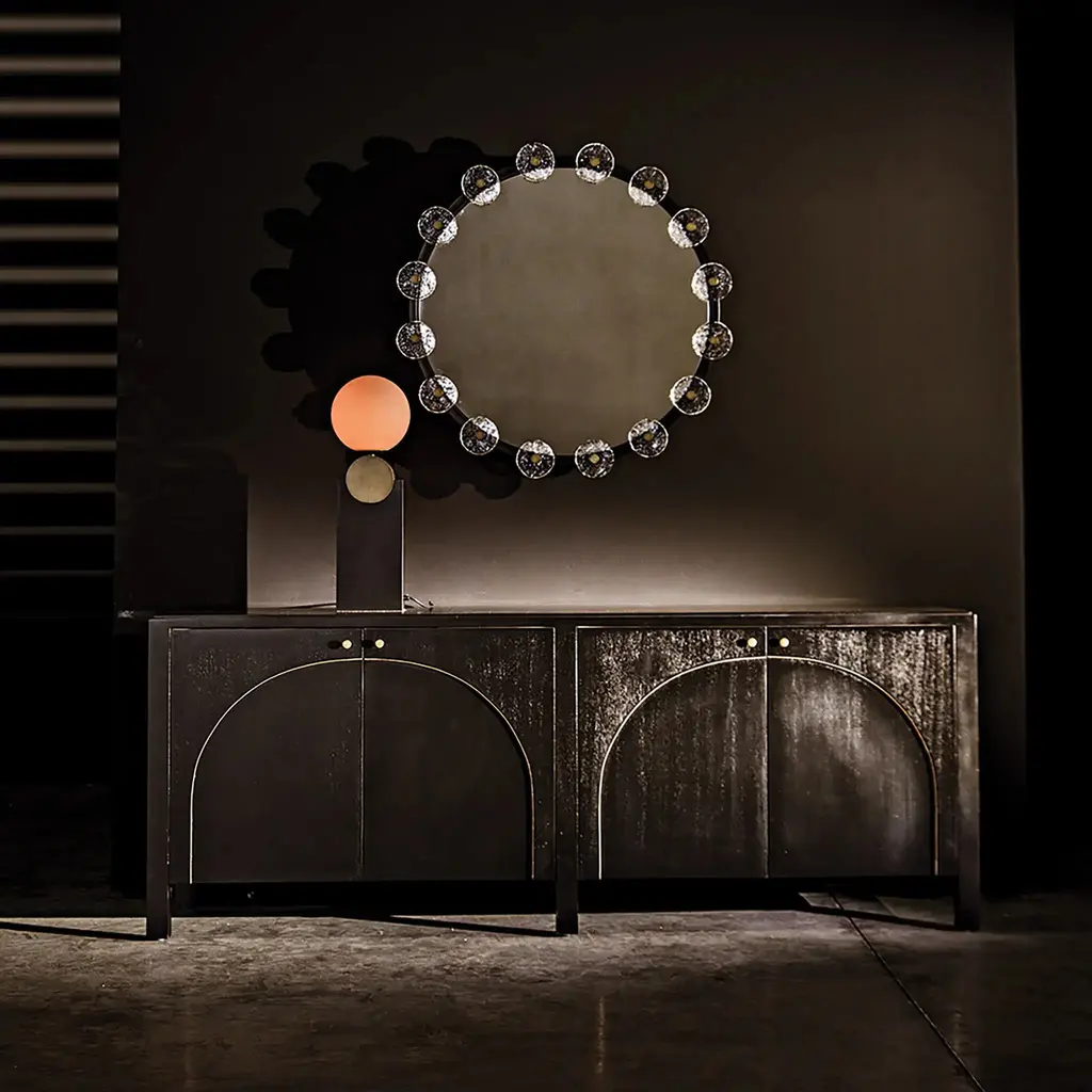 A dazzling display of design virtuosity, the artisan crafted Kate Table Lamp is an explosion of light. The piece finishes in matte black and aged brass for a modern look.