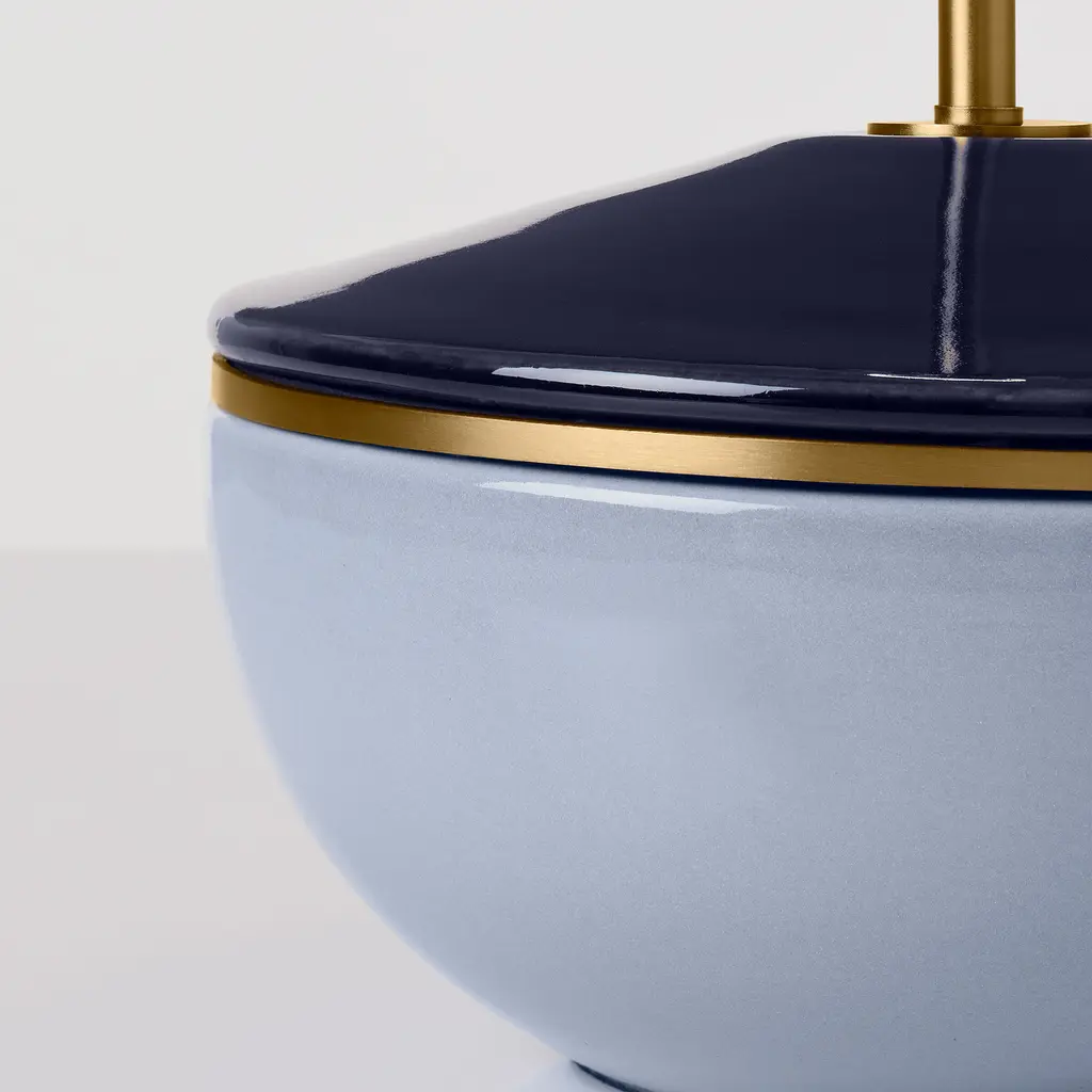 Designed by kate spade new york, the Cade table lamp is inspired by color-blocking on playful yet simple geometries. It features two glazed ceramic forms combined with simple brass details, evoking the look of color-blocked jewelry.