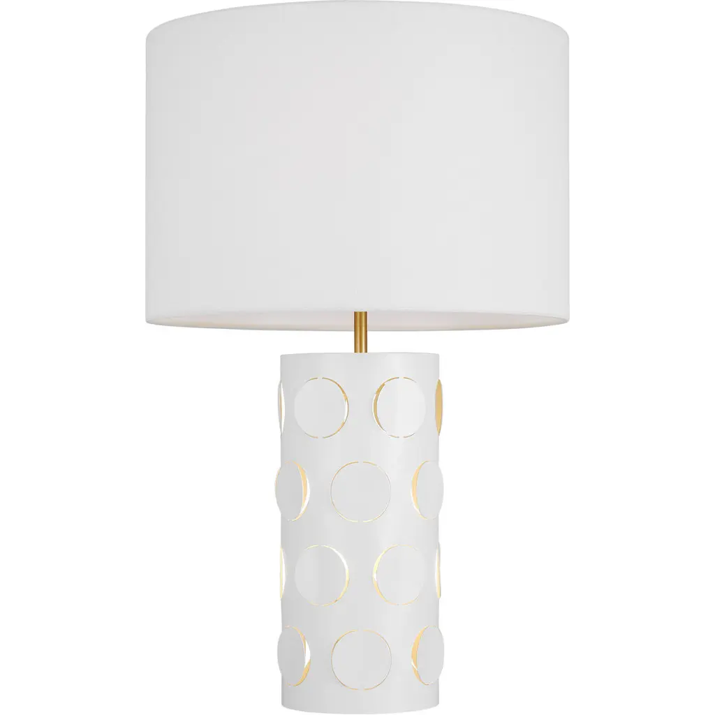 Dots are iconic to the kate spade brand·a simple and playful graphic motif. Dottie takes an iconic kate spade dot motif and cuts it into metal·creating a playful ambient light effect. A classic metal drum shade with an extra twist of perforated pattern. We¦ve taken an iconic kate spade dot motif and pierced it into metal to create a base of a cylindrical table lamp. The base is illuminated·creating a playful ambient light effect in addition to the glowing drum shade. Use this fixture in any classic table lamp scenario·on either side of a sofa or bed, or in an office or entry as well.