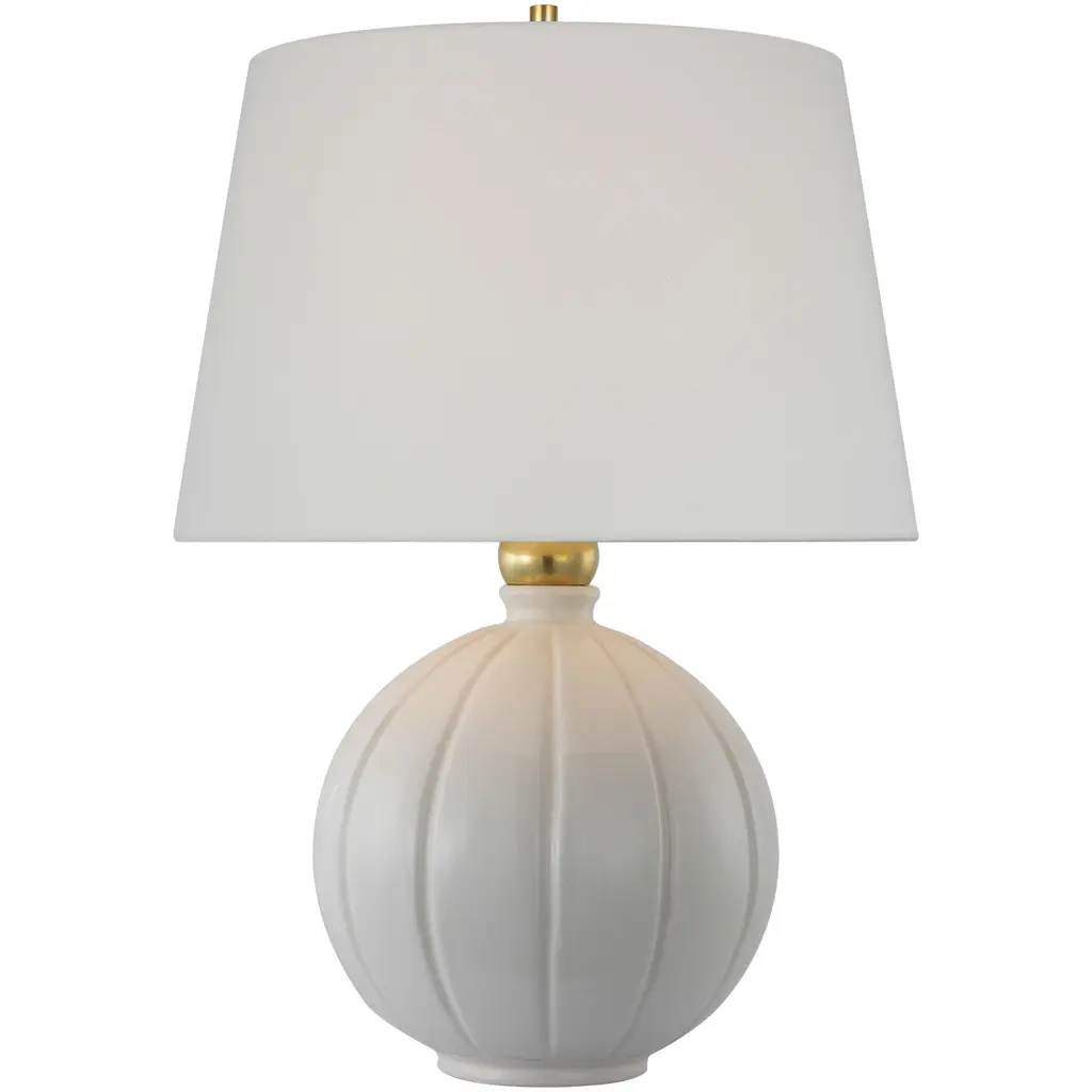 Elsie Small Table Lamp in Cream Painted Glass with Linen Shade