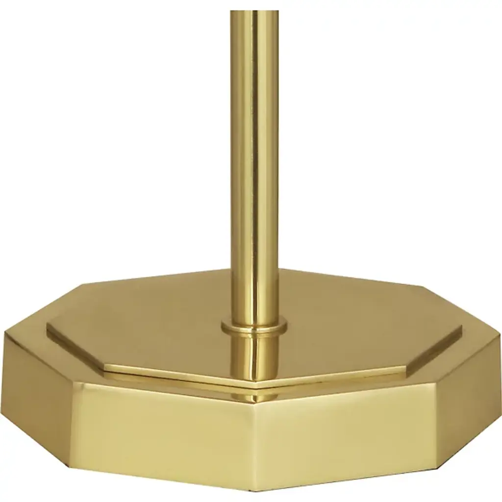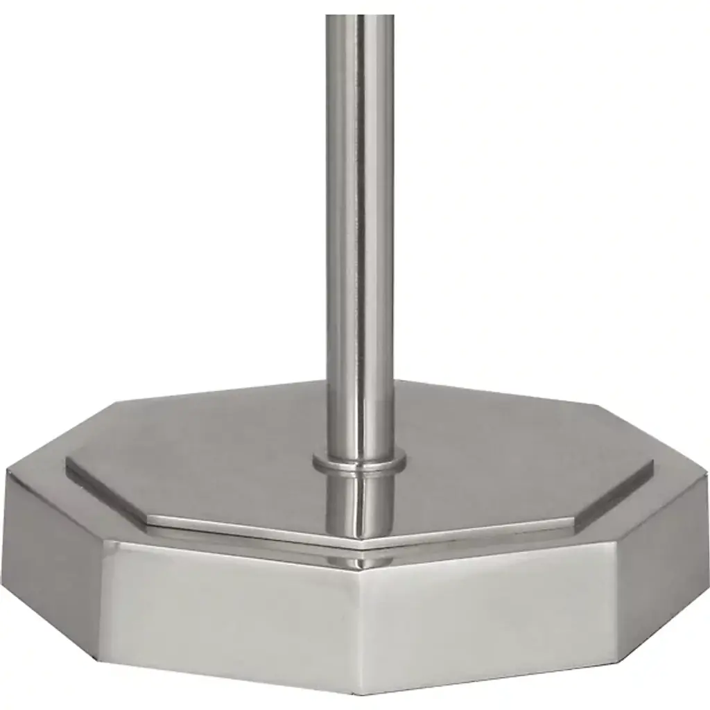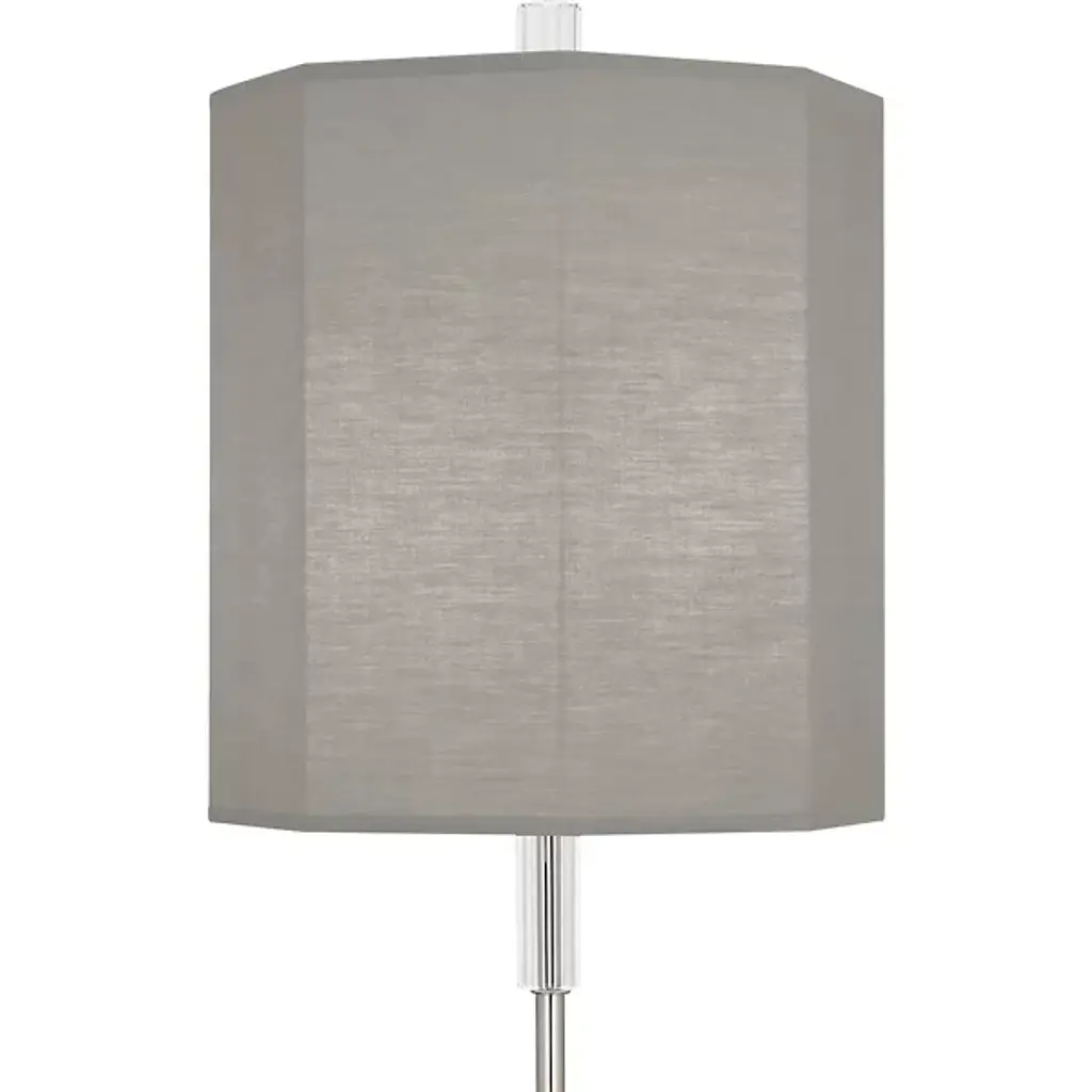The Kate Table Lamp from Robert Abbey brings a clean and distinctive accent to a room as it illuminates with a gentle glow. Its refined hardback fabric shade features an octagonal shape that instantly refreshes its familiar silhouette. A thin polished metal body is held in place by a matching octagonal base while its incandescent lamping sends light filtering through the shade to brighten the room and set a relaxing tone.