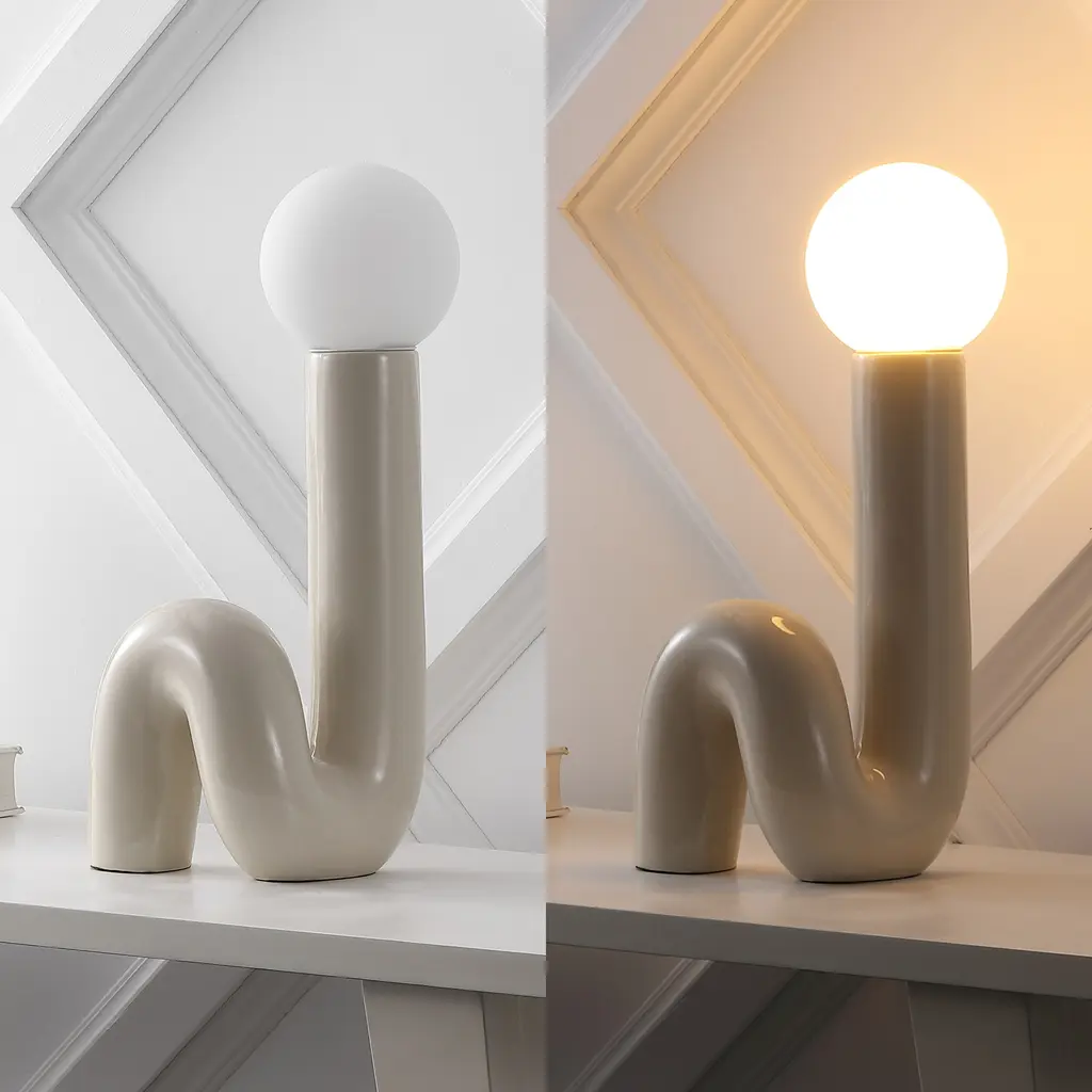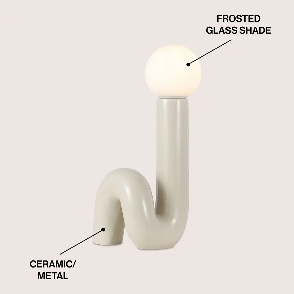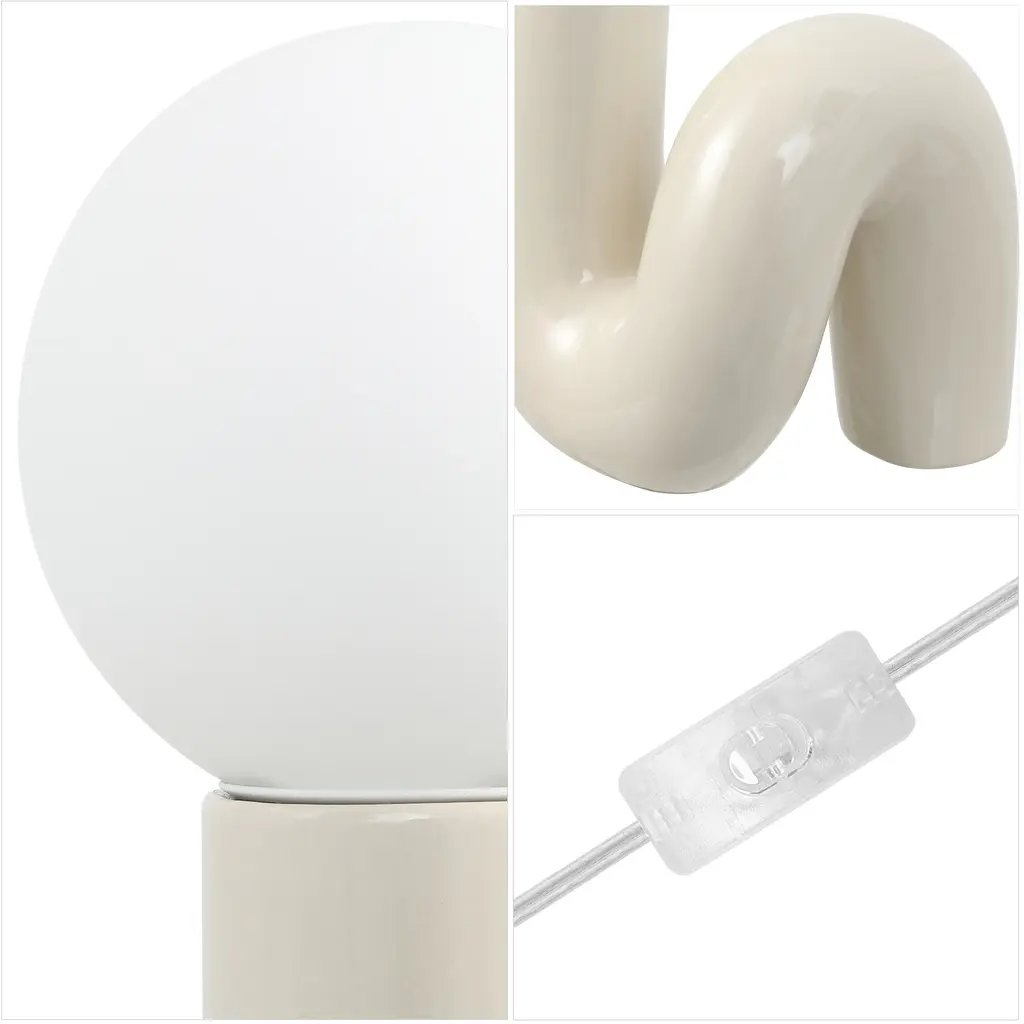 Create a groovy, retro vibe with our minimalist tube lamp. The sleek, spiraling ceramic base is topped by a frosted glass globe. An LED bulb provides bright, warm light for any contemporary interior.-A transitional white ceramic base is accented by a frosted white glass globe-Sleek, modern design features an in-line switch-Make a bold statement in the living room or bedroom with this Scandinavian-inspired design-Eco-friendly 4W LED bulb included-Takes 1 bulb and compatible with TYPE "B" 40W or CFL 13W or LED 9WColor: White-Body Material: Ceramic-Includes: One (1) lampAssembly RequiredLamp: 18 inches high x 8 inches wide x 8.25 inches deepAbout us: You see a lamp.We see a decorative work of art.A perfectly curved shade casts a dramatic shadow on a floor. Compatible with LED lightbulbs: as easy on the environment as they are on the eyes. The JONATHAN Y Lighting collection considers every detail from impeccably sourced materials to designer styling. And our prices are so attractive, we've transformed a functional necessity into a fashion accessory.JONATHAN Y Lighting - a fashion revolution in home decor.