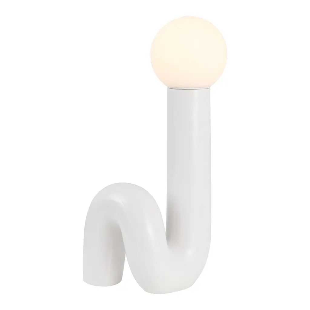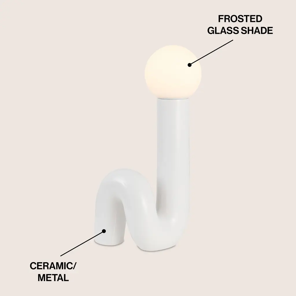 Create a groovy, retro vibe with our minimalist tube lamp. The sleek, spiraling ceramic base is topped by a frosted glass globe. An LED bulb provides bright, warm light for any contemporary interior.-A transitional white ceramic base is accented by a frosted white glass globe-Sleek, modern design features an in-line switch-Make a bold statement in the living room or bedroom with this Scandinavian-inspired design-Eco-friendly 4W LED bulb included-Takes 1 bulb and compatible with TYPE "B" 40W or CFL 13W or LED 9WColor: White-Body Material: Ceramic-Includes: One (1) lampAssembly RequiredLamp: 18 inches high x 8 inches wide x 8.25 inches deepAbout us: You see a lamp.We see a decorative work of art.A perfectly curved shade casts a dramatic shadow on a floor. Compatible with LED lightbulbs: as easy on the environment as they are on the eyes. The JONATHAN Y Lighting collection considers every detail from impeccably sourced materials to designer styling. And our prices are so attractive, we've transformed a functional necessity into a fashion accessory.JONATHAN Y Lighting - a fashion revolution in home decor.