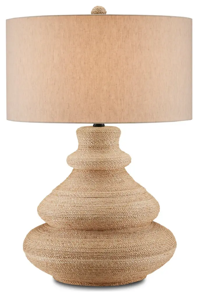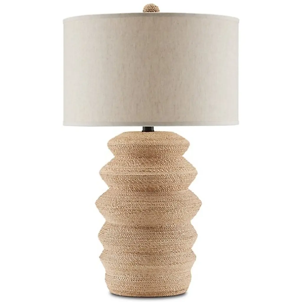 Robust design comes in a familiar design. The Kavala Table Lamp from Currey & Company features an intriguing accordion-shaped silhouette with rich texture and quality craftsmanship. Crafted by talented artisans, abaca rope wraps around a wrought iron, accordion-shaped base. The natural linen shade attaches to the base by a rope-wrapped finial, bringing together the natural style. The shade diffuses light to fill your office, bedroom, or living room with welcoming illumination.