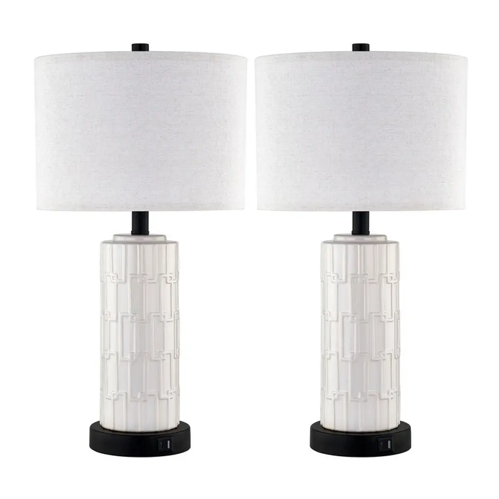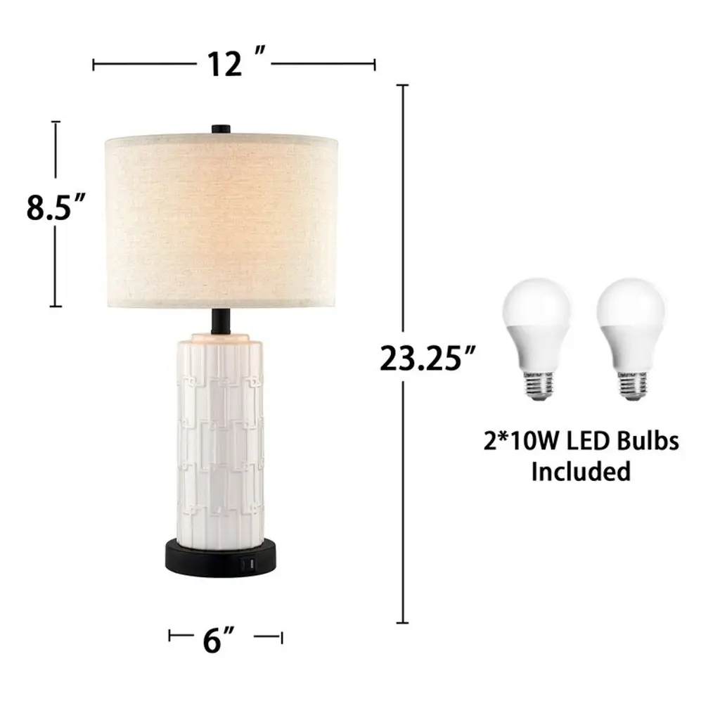 Kawoti 23" Ceramics Table Lamp Set With Usb Port And Ac Outlet, Bulbs - W12" * H23.25" - W12" * H23.25"