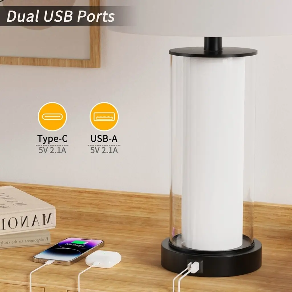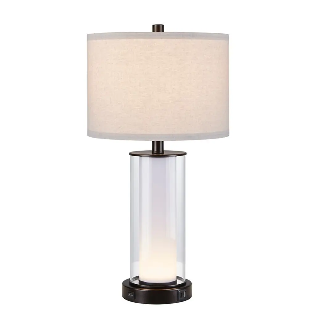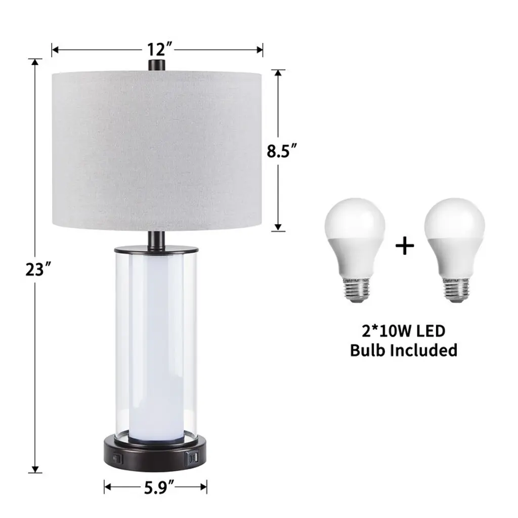 Kawoti 23 Inch Modern Glass Table Lamp Set With Night Light (Set Of 2) - Bronze