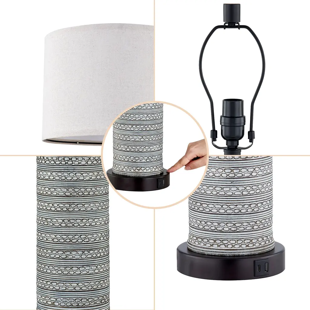 Impressive and exquisite, this farmhouse style meets modern functionality in this lamp sets. The overall simple and off gray tone creating a warm and comfortable space in your home. LED bulbs included for both light, provides different lighting solution.Features:Dimension:Cleaning Note: