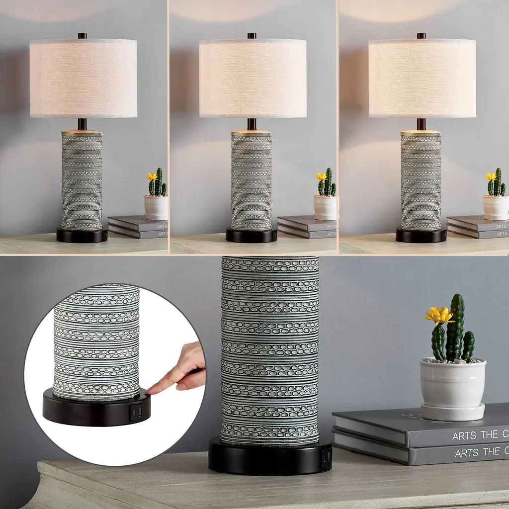 Kawoti 23” Touch Control Table Lamp Set With Usb Ports, Bulbs - W12" * H23" - W12" * H23"