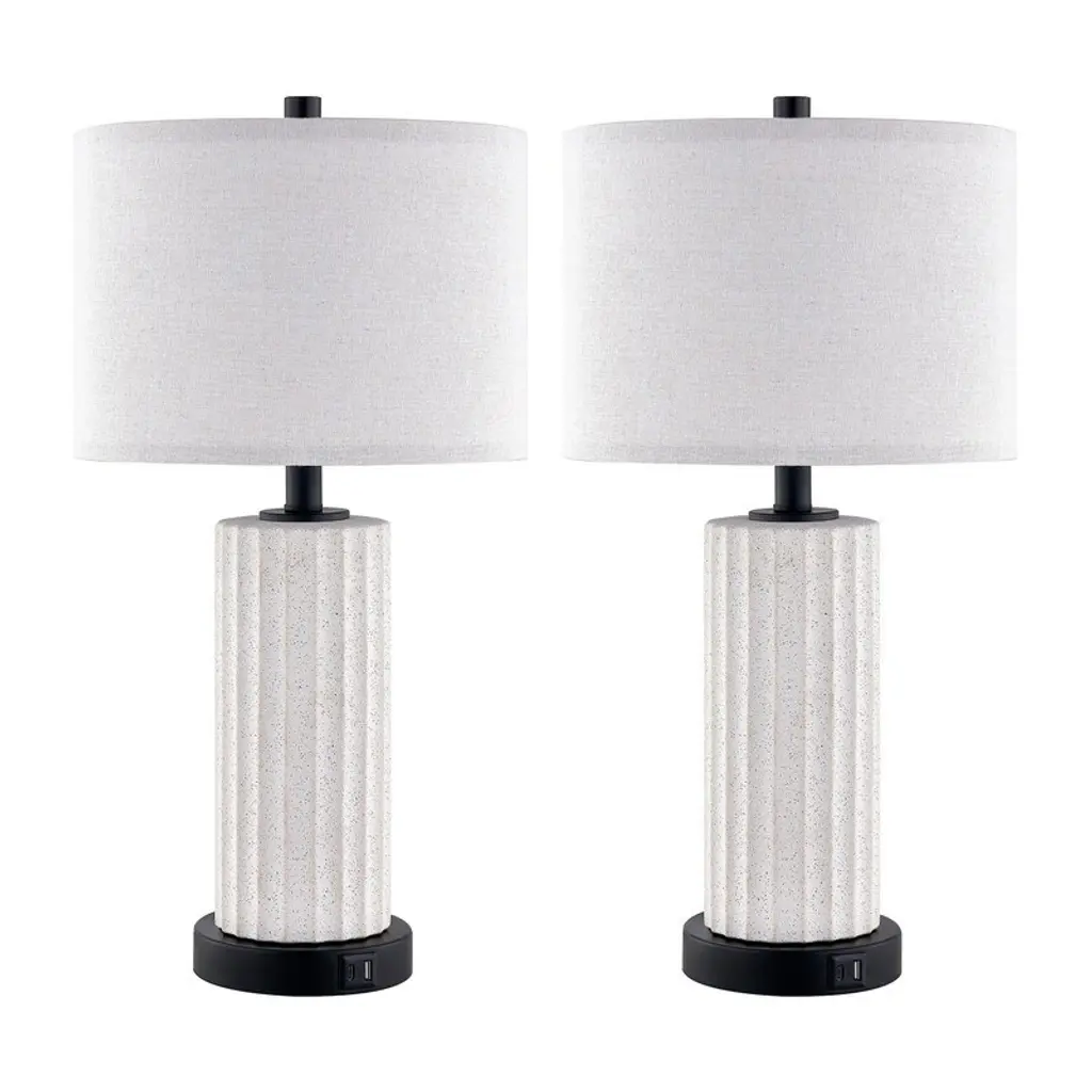 Kawoti 23inch Ceramics Table Lamp Set With Bulbs, Usb Ports (Set Of 2) - W12" * H23.25" - W12" * H23.25"