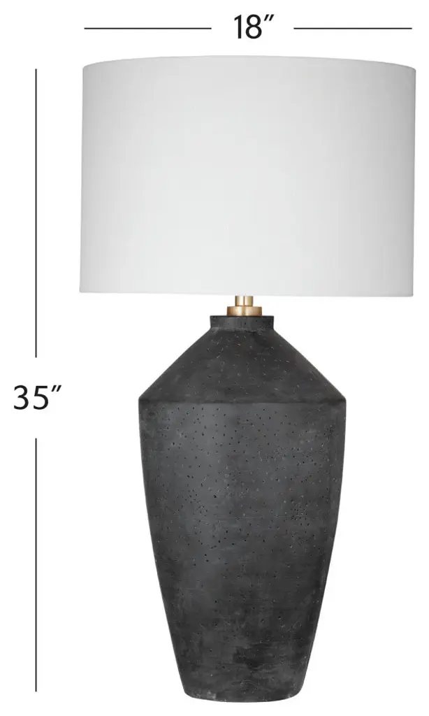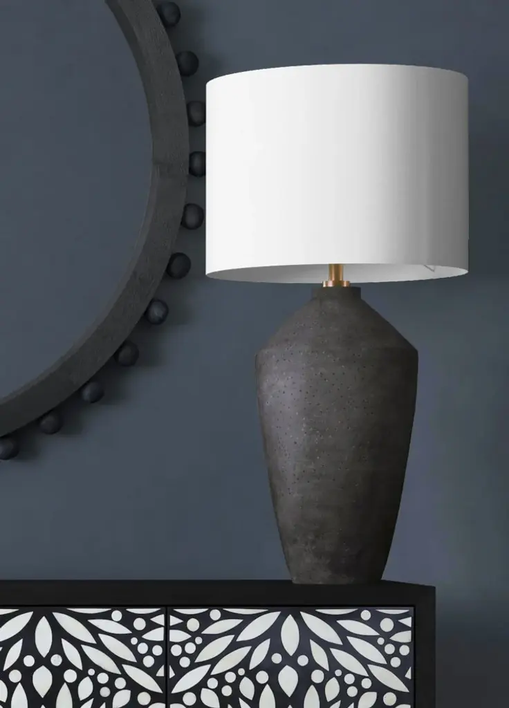 The Kaycee Table Lamp features a contemporary urn-style base with a sleek matte black finish, adding a modern touch to any room. Its clean, simple design allows it to complement a variety of interior styles, making it a versatile addition to your home. The lamps understated elegance and neutral tones provide both style and function, creating a sophisticated atmosphere in any space. The Kaycee Table Lamp is a perfect choice for those seeking a refined, modern look with lasting appeal.Features:Contemporary design with traditional aestheticsFeatures a white drum style shadeBulb Type A required, not includedEasy assembly - just attach harp, finial and shadeRequires 1 x 100W Watt Replaceable LED (Not Included)For over a century, Bassett Mirror has been synonymous with style and quality, transforming homes with its sophisticated and timeless designs. With a wide-ranging collection of furniture, lighting, mirrors, and art, Bassett Mirror seamlessly blends modern style with classic appeal. From rustic modern to luxe glam, each piece is thoughtfully crafted to inspire and elevate any space. Committed to exceptional value and customer care, Bassett Mirror makes it easy for homeowners to create beautiful, personalized interiors with confidence.