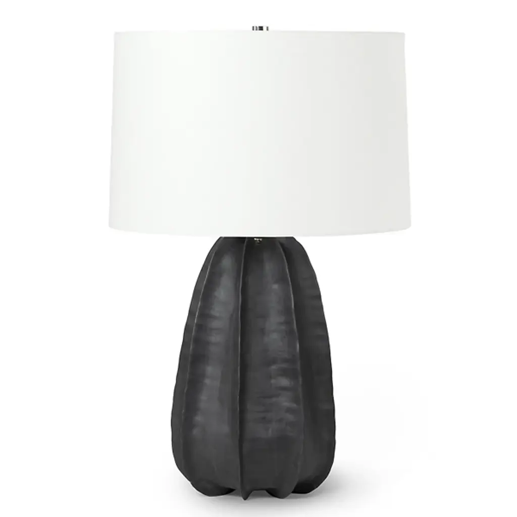 The Keiko Table Lamp from Palecek is a lively piece of functional decoration featuring alluring grooves like an organic seed. This precious piece makes an impression at any time of day. Its base features a durable porcelain construction. Fired at high temperatures, the round body features bold ridges and subtle texture. This texture draws the eyes against the picture-perfect linen drum shade. The classic shade filters the light for a cozy ambiance.