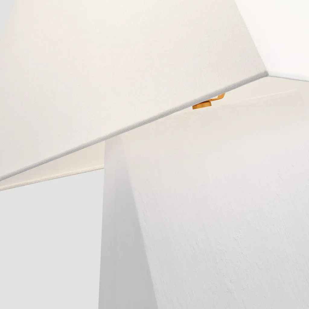 The Herrero table lamp series lends to the idea of a hand-formed artisan look. Bringing a tonal touch to the desktop or bedside, with a pyramid-style base in three finishes, then paired with a white line fabric shade. Herrero pairs contrasting materials, complementing almost any d?cor