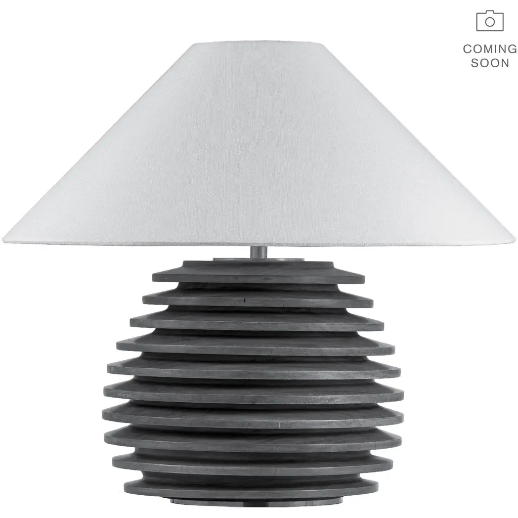 Crenelle 27" Stacked Table Lamp in Limed Birch with Linen Shade