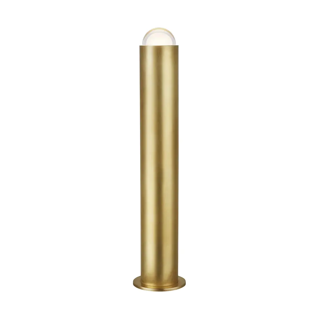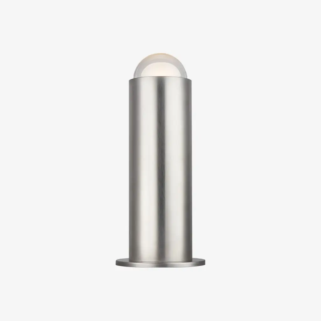 The Ebell Small Table Lamp by Kelly Wearstler will make a bold statement in any space. The multi-dimensional domed glass prism is set on top of the pure cylindrical metal body. The concentrated warm LED within the frosted glass interior emits a state-of-the-art expression of light in this illuminating departure from the expected.