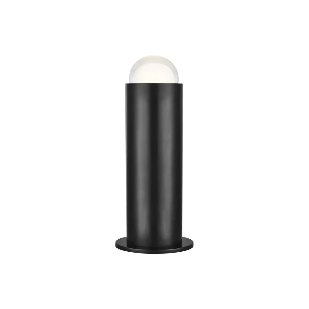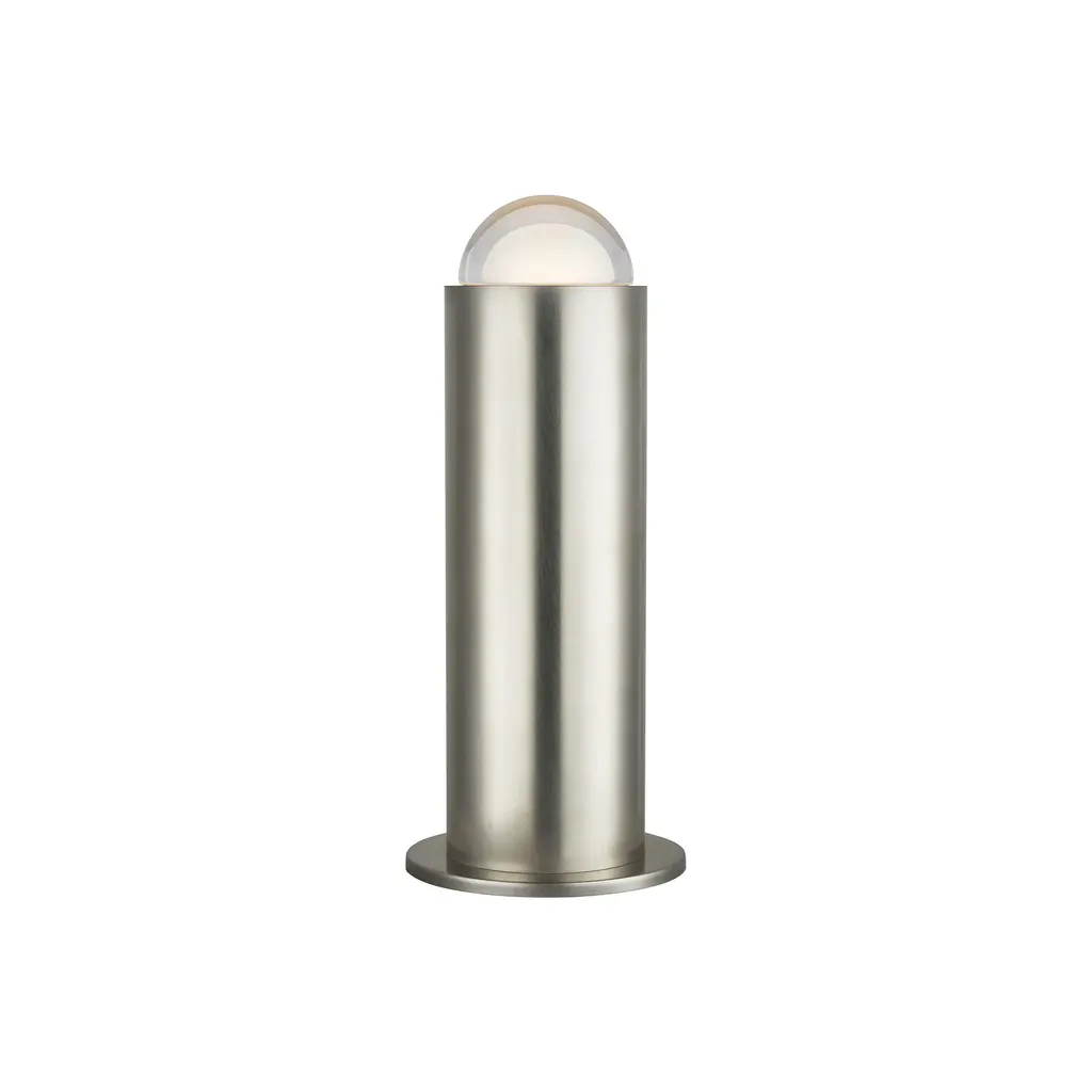 Elevate your space with the Kelly Wearstler Ebell LED Table Lamp from Visual Comfort & Co. Designed by Kelly Wearstler, this lamp boasts a multi-dimensional domed glass prism atop a sleek cylindrical metal body. With a warm LED light shining through the frosted glass interior, it's an artistic and sophisticated addition to any room. Use to flank a spacious sofa or add to a spa-inspired bathroom for a unique touch of ambient light. Highlights