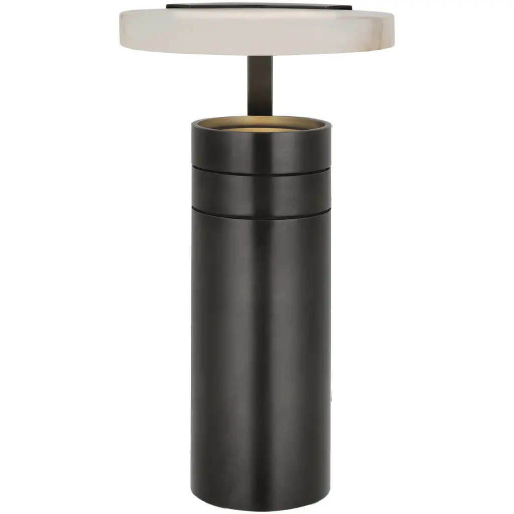Melange 9" Rechargeable Floating Disc Accent Lamp in Bronze with Alabaster