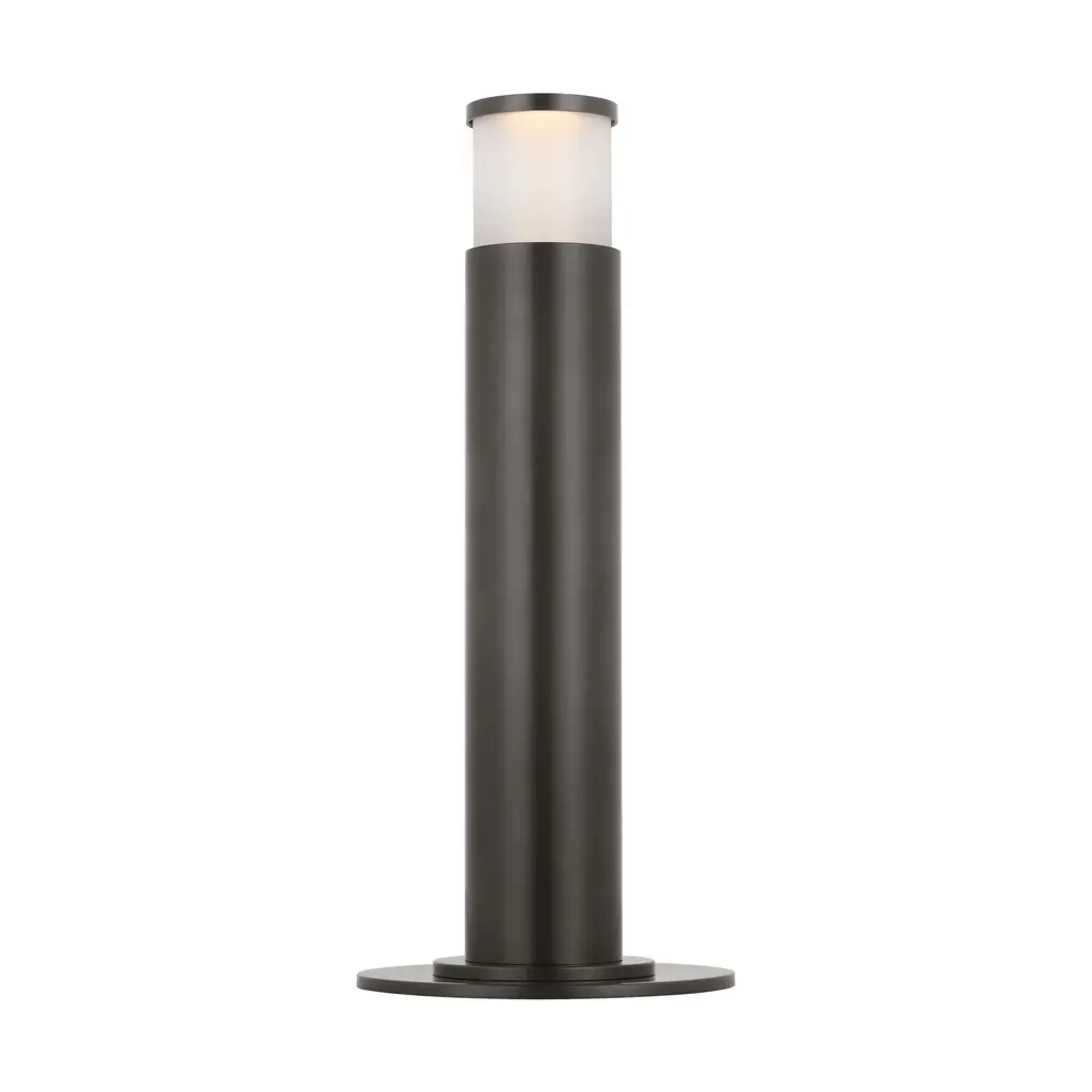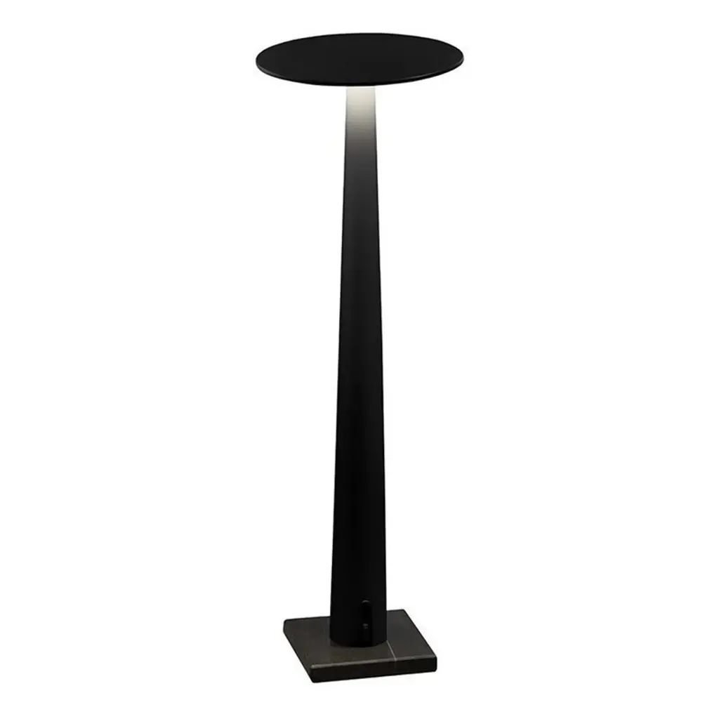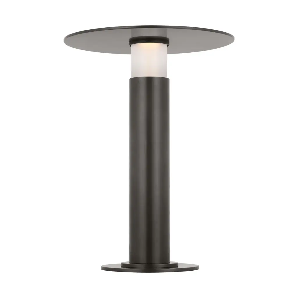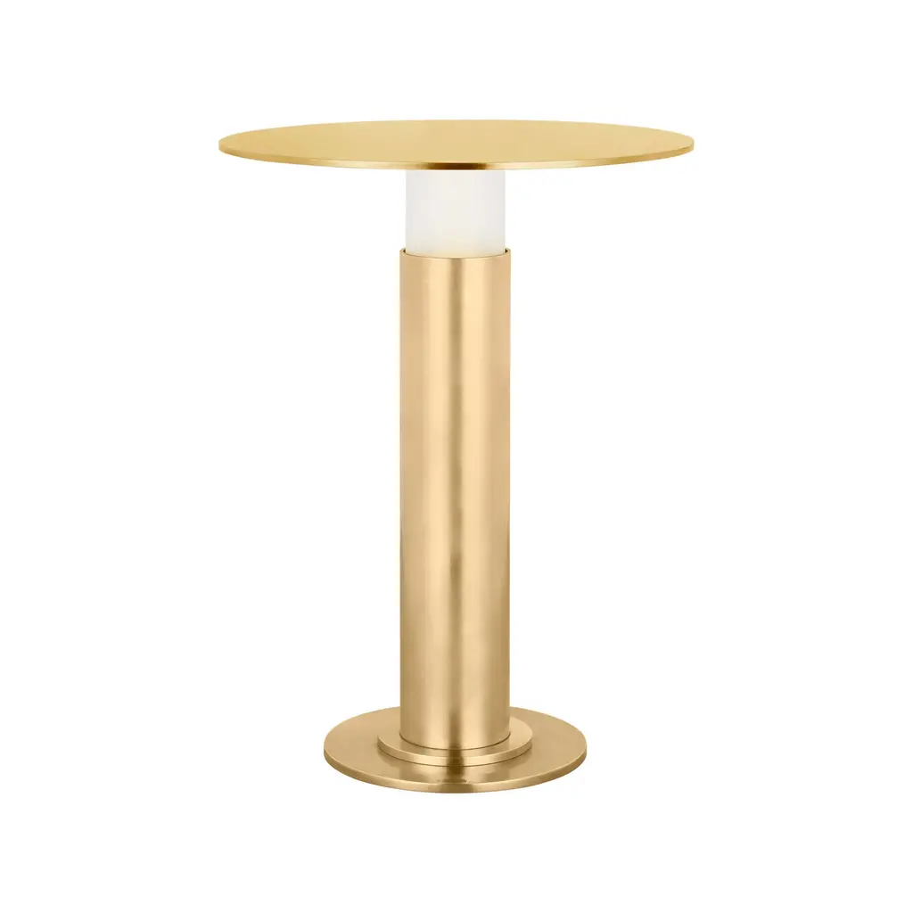 Bring an elegant glow anywhere with the Kelly Wearstler Miguel Portable Table Lamp from Visual Comfort Modern. A modern take on classic bistro lamps, it features a warm LED light, an elegant reflecting-plate shade, and an etched glass tube for soft, indirect illumination. Available in tall and mini sizes, the portable mini version is rechargeable and perfect for outdoor or shelf display. Recharge in just 5 hours and enjoy 12-14 hours of battery life. Wall charger included. Highlights