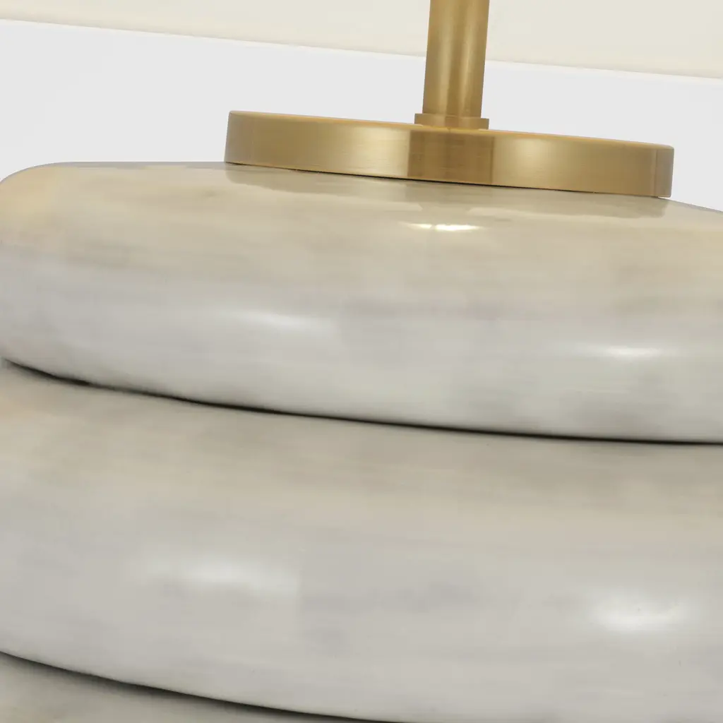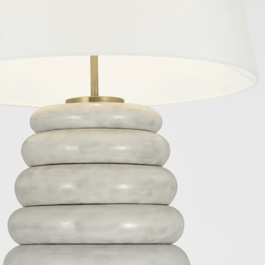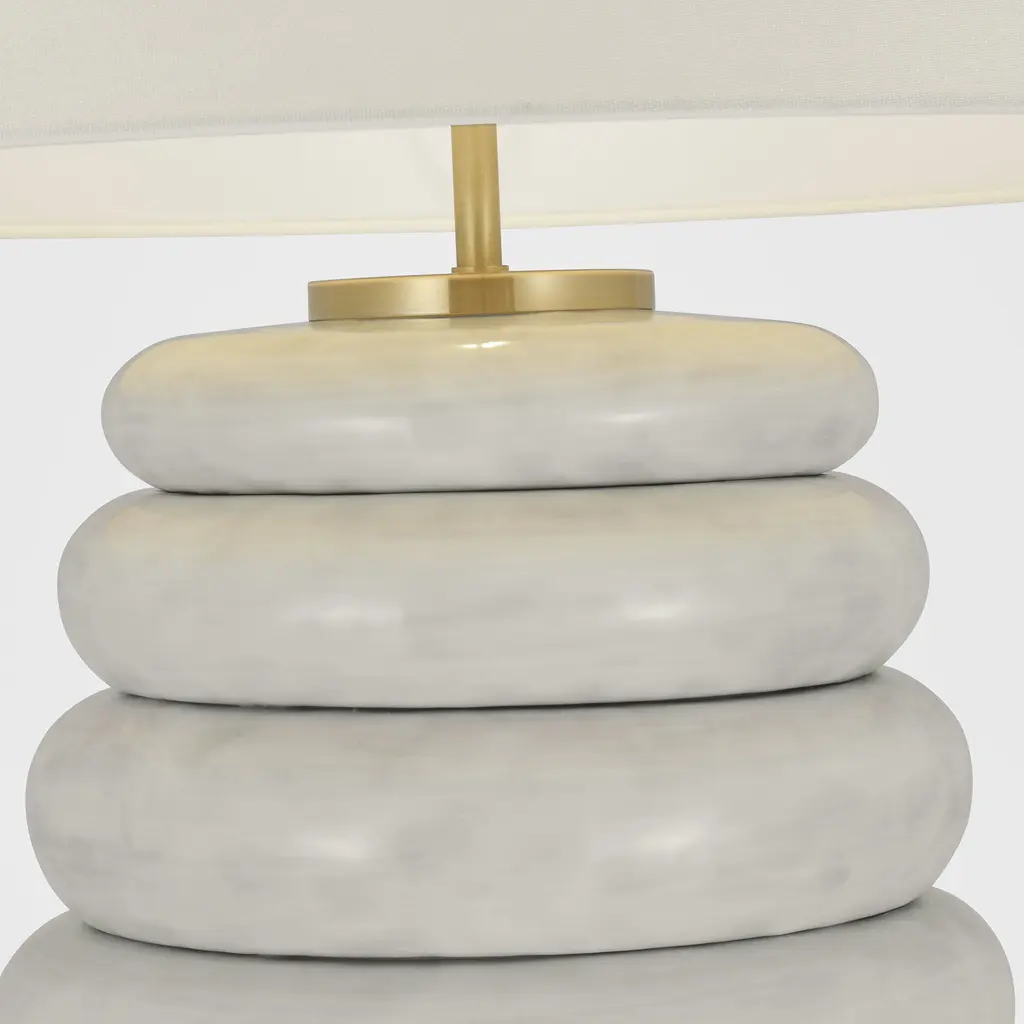 Phoebe Extra Large Stacked Table Lamp in Antiqued White with Linen Shade