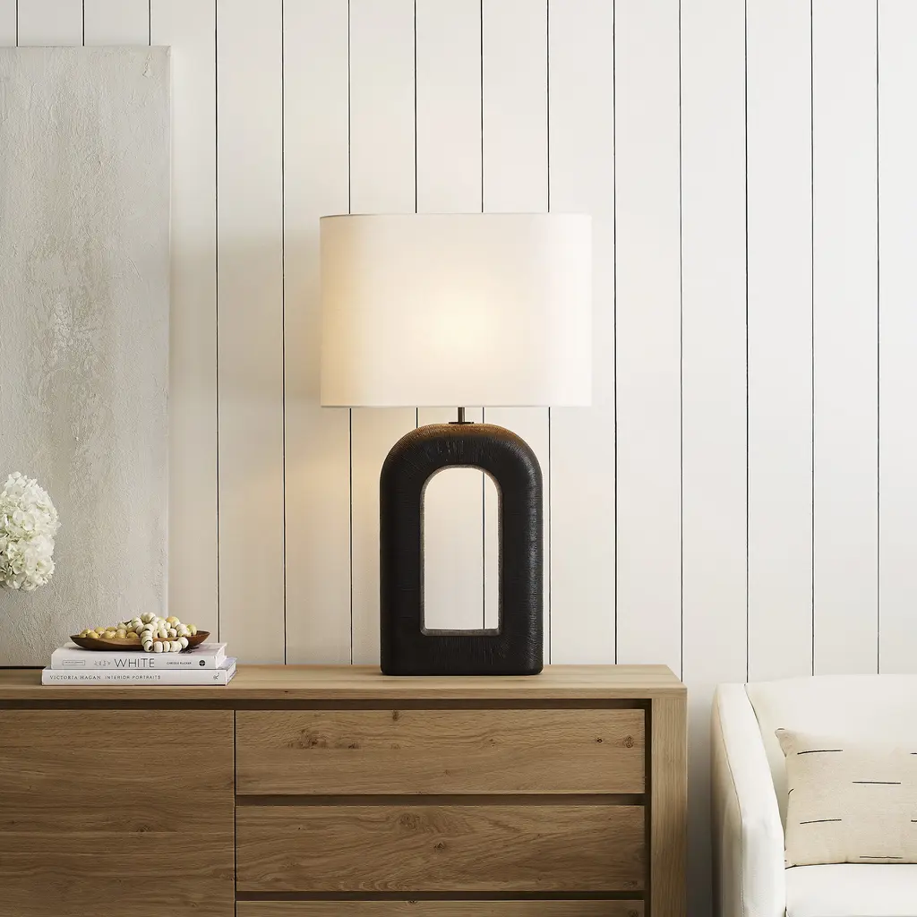 Kelly Wearstler Utopia 33.5 Inch 15.00 Watt Aged Iron Combed Table Lamp Portable Light, Large