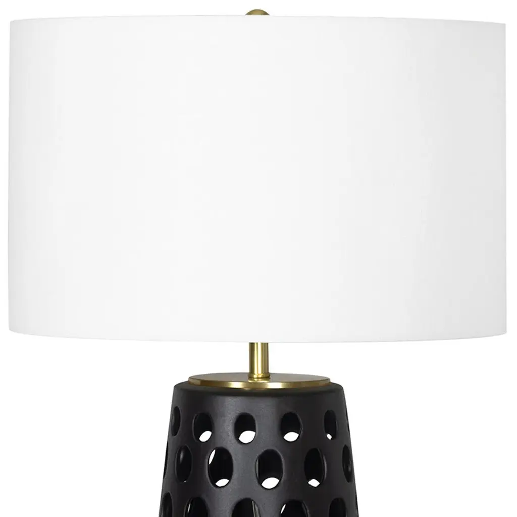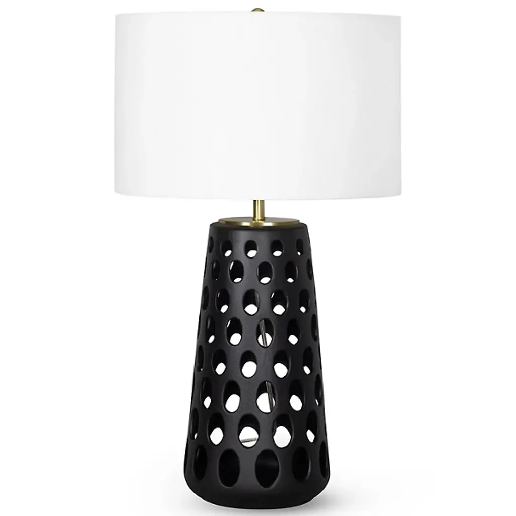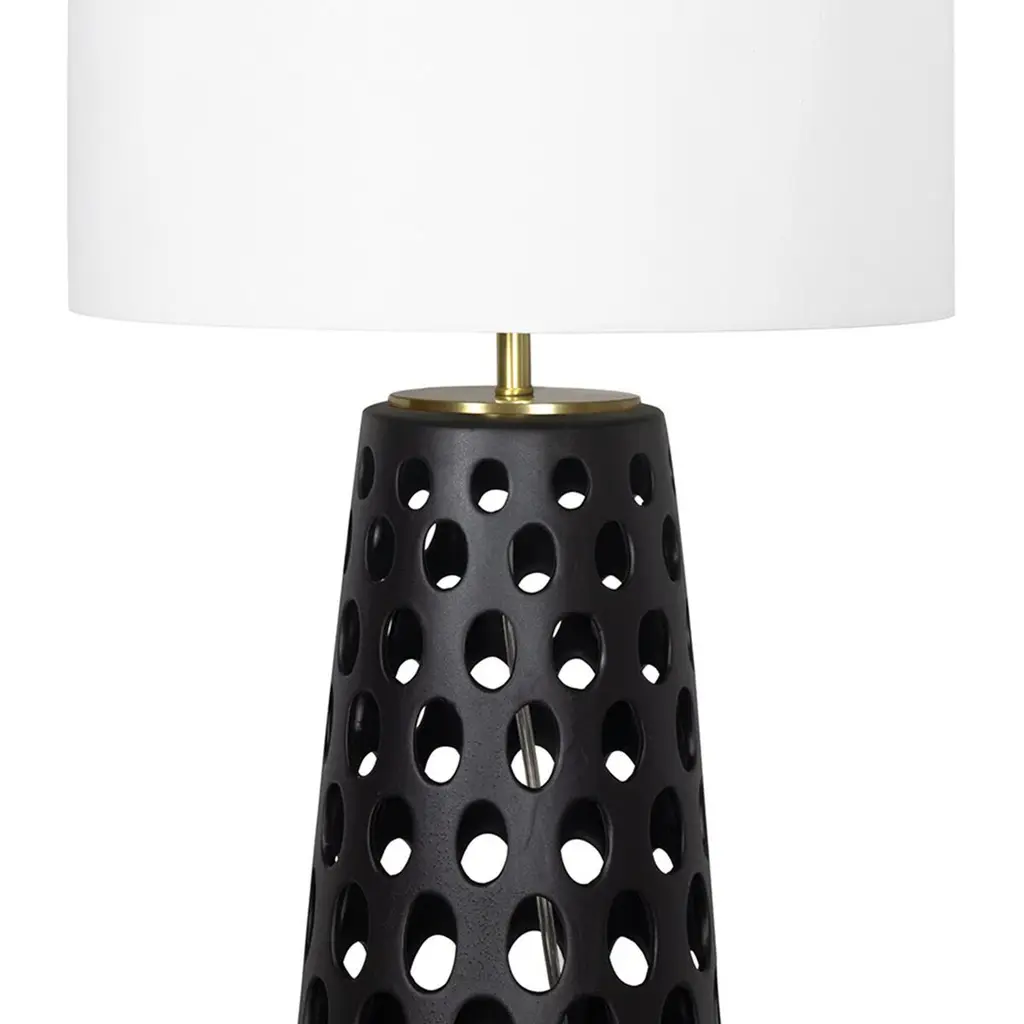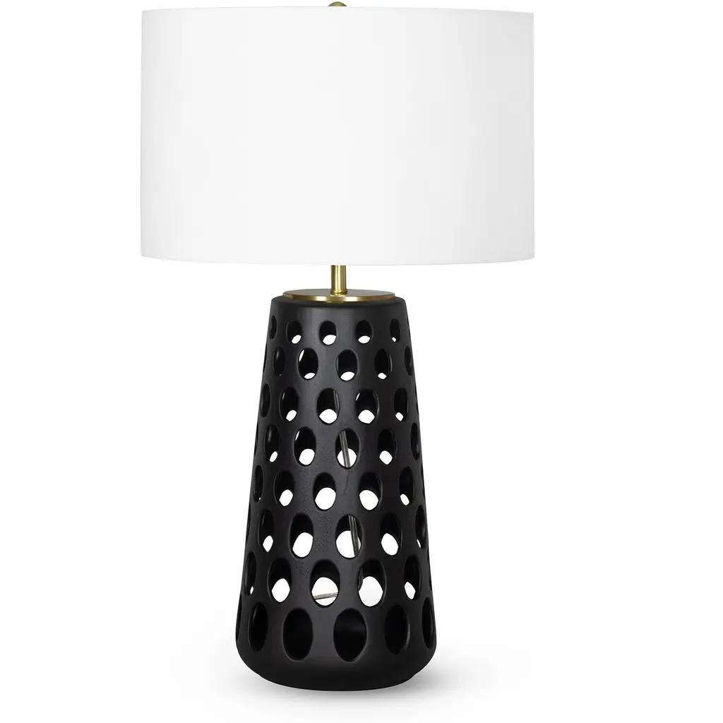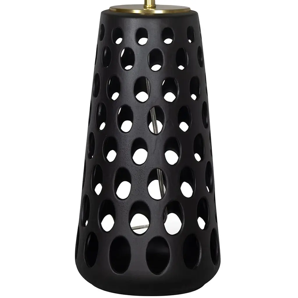 Natural light can filter through perforations on the base of the Kelvin Ceramic Table Lamp, creating a beautiful effect by day as much as it has while illuminated during the evening. With its natural terracotta finish or black glaze and paired with a crisp linen shade and natural brass fittings, the Kelvin would look incredible as a pair on either side of a sofa or bedside.