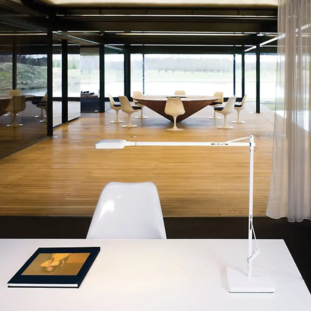 Designed by famed Italian architect, Antonio Citterio, the Kelvin Edge Table Lamp by FLOS blends function and efficiency into an alluring minimalist fixture. This piece features an Aluminum Painted or Chromed body (depending on selected finish) with conveniently adjustable joints that culminates in a compact photoengraved die cast head. Equipped with exclusive Edge Lighting technology which employs innovative technology for a balanced, yet robust illumination. Available in a variety of mounting options for added versatility.