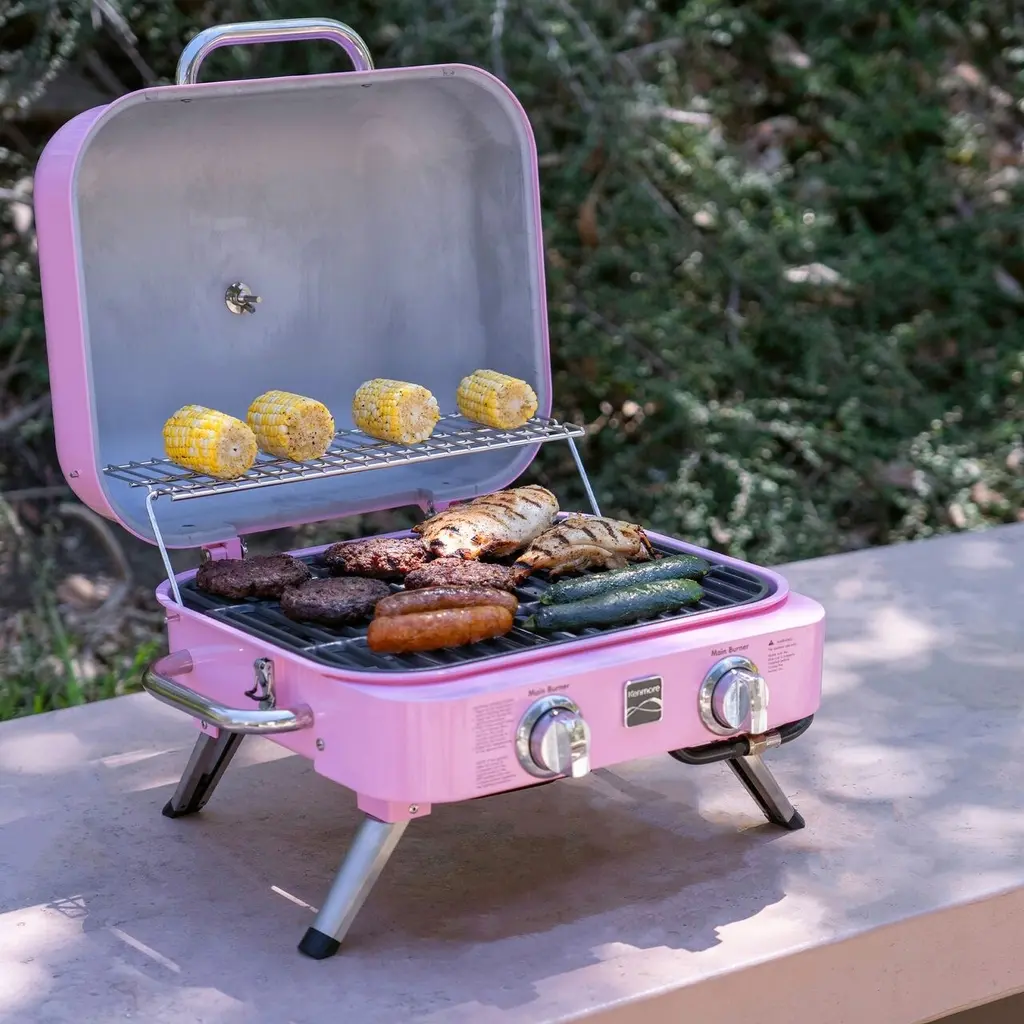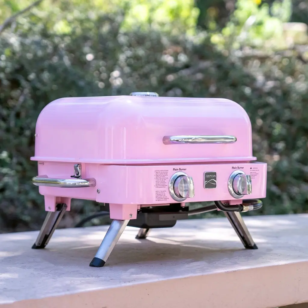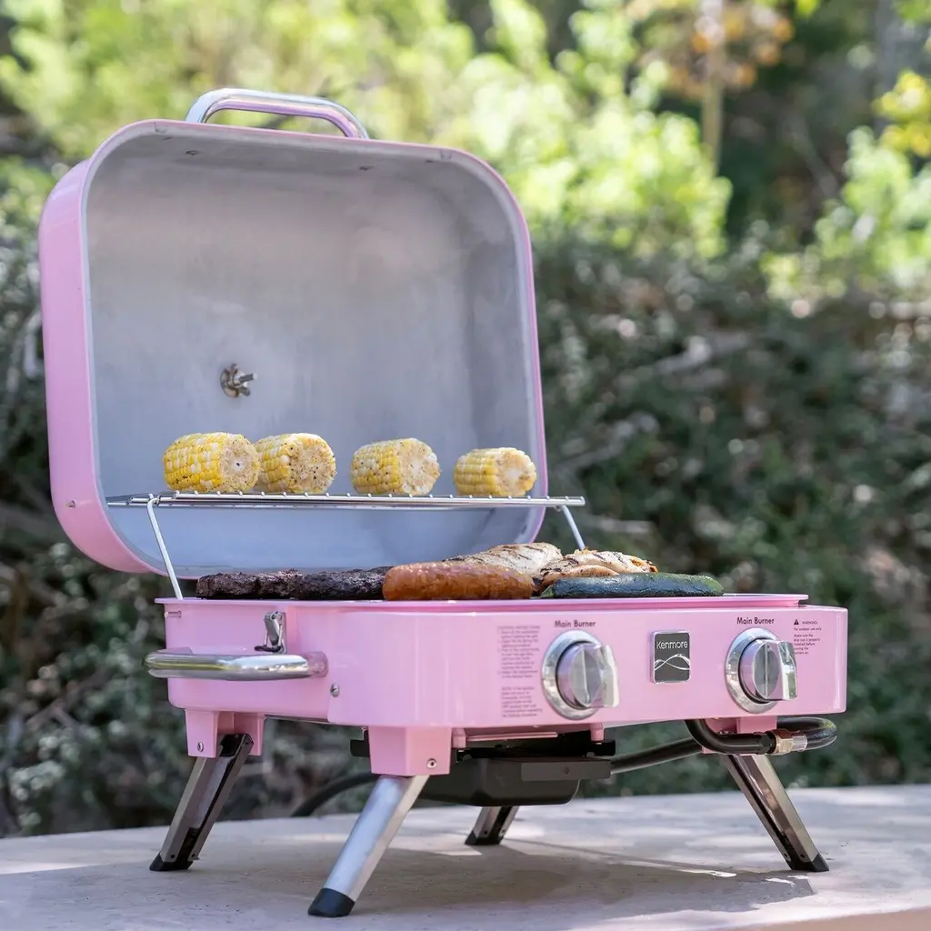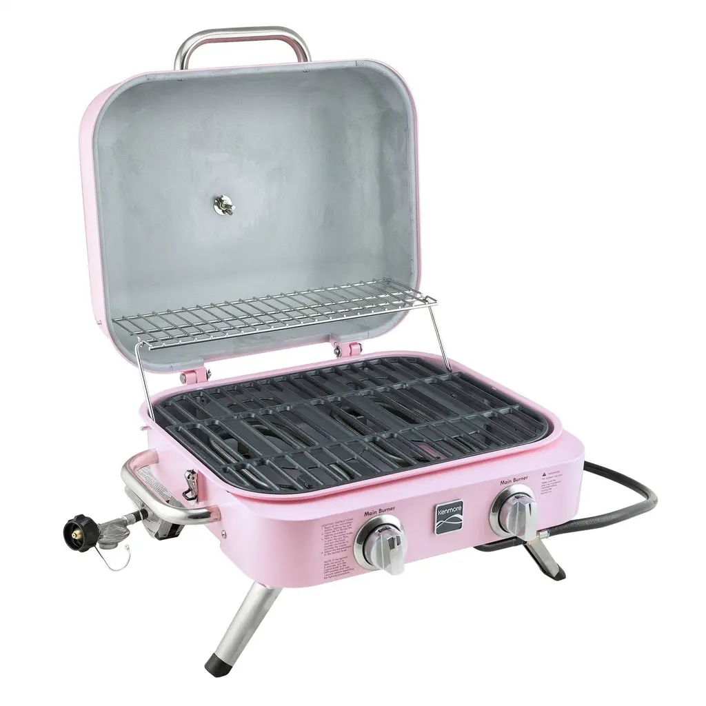 Elevate your outdoor cooking experience with the new Kenmore 2-Burner Retro Portable Gas Grill. This two-burner small propane gas grill is designed for on-the-go grilling excellence, boasting a generous 262 square inches of barbeque grilling surface—perfect for sizzling up to 9 burgers at once. With its sleek retro design and tabletop versatility, this small compact BBQ grill not only delivers style but also functionality.Equipped with electronic ignition and a warming rack, the Kenmore 2-Burner portable grill offers a total of 14,000 BTUs of cooking power. Its compact size and side handles make it an ideal companion for camping, glamping, tailgating, outdoor adventures, parks, picnics, and BBQs on the go. Whether you're embarking on family escapades or celebrating outdoor events, this portable outdoor gas grill ensures a memorable and flavorful experience.Experience the convenience of quick and efficient barbecue grilling wherever your journey takes you. Invest in the Kenmore 2-Burner Retro Portable Gas Grill for a perfect blend of style, portability, and impressive outdoor cooking capabilities.