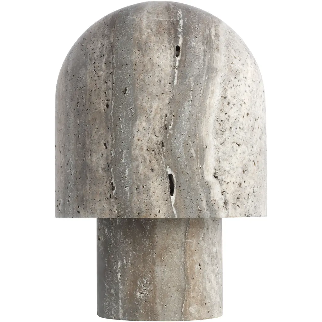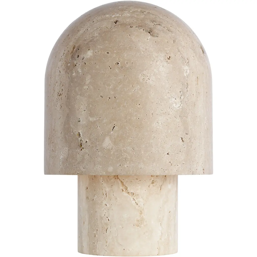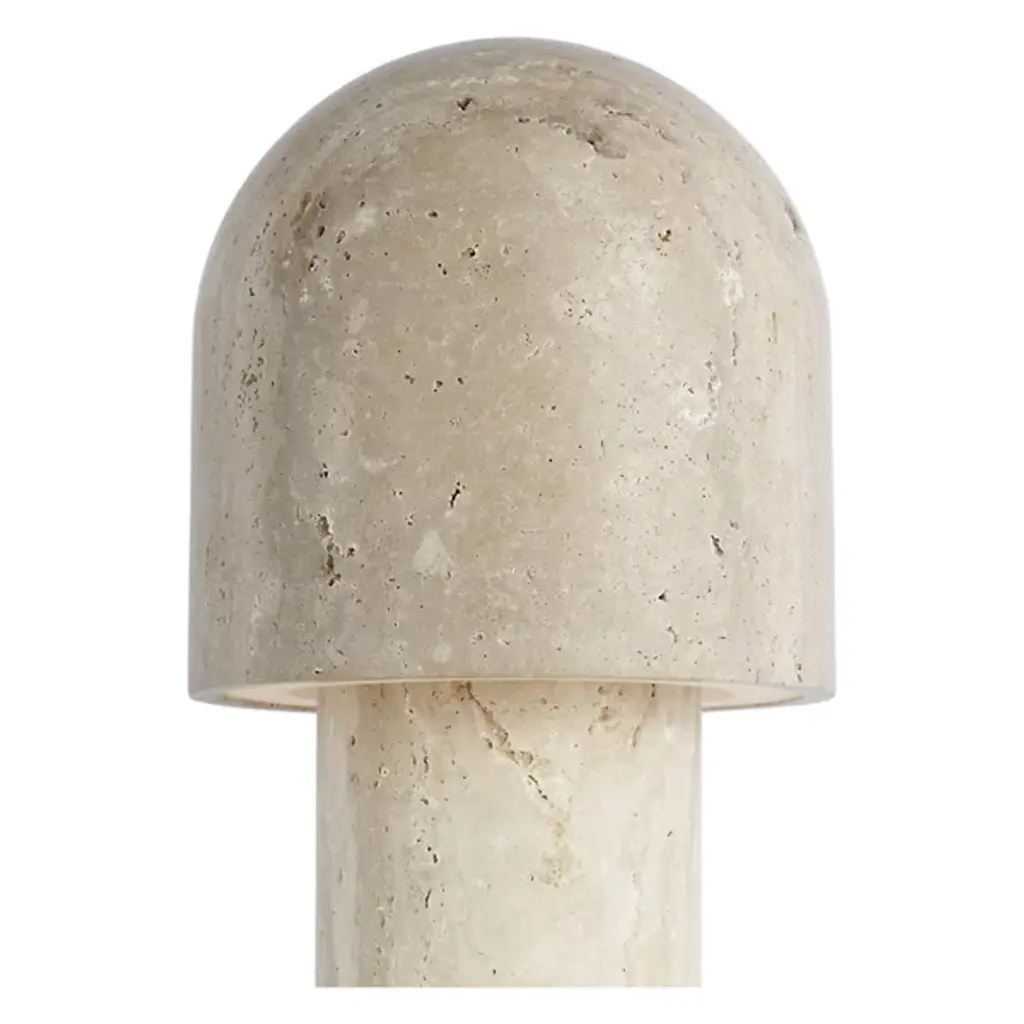 The Kennett LED Travertine Table Lamp from Visual Comfort Modern adds natural charm to contemporary spaces. It is designed by Sean Lavin, with a gently curved form that draws inspiration from a mushroom and features a travertine base and shade that adds unique texture and visual weight. A domed shade houses warm LED light, diffusing a soft, ambient glow perfect for creating a relaxed atmosphere. With influences from Mid-Century and Artisanal Modern design, it’s a smart choice for compact surfaces where thoughtful design makes a quiet statement.