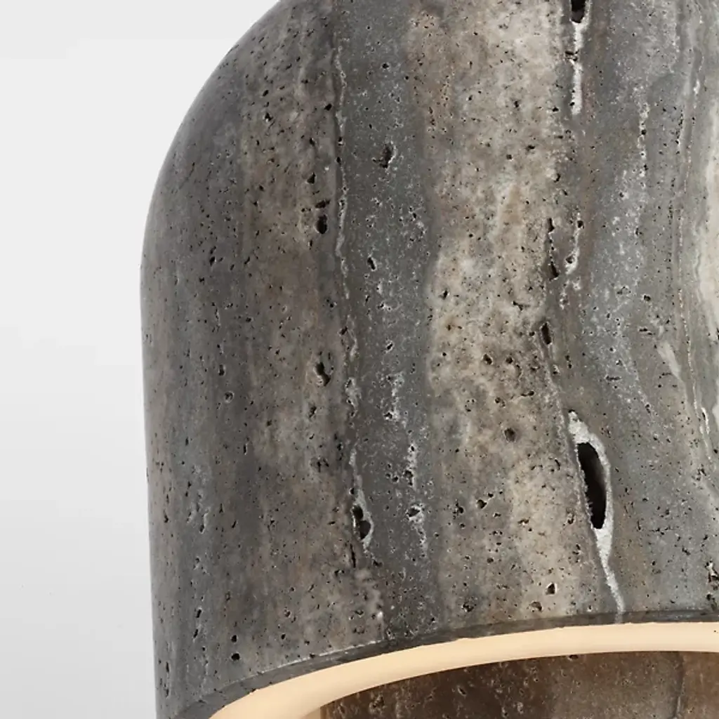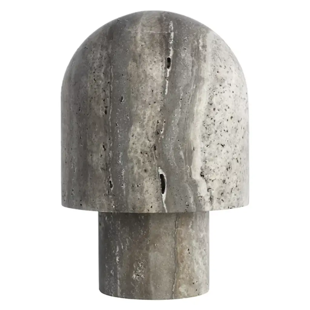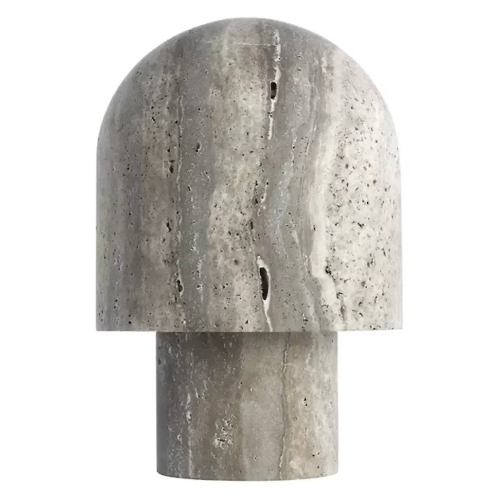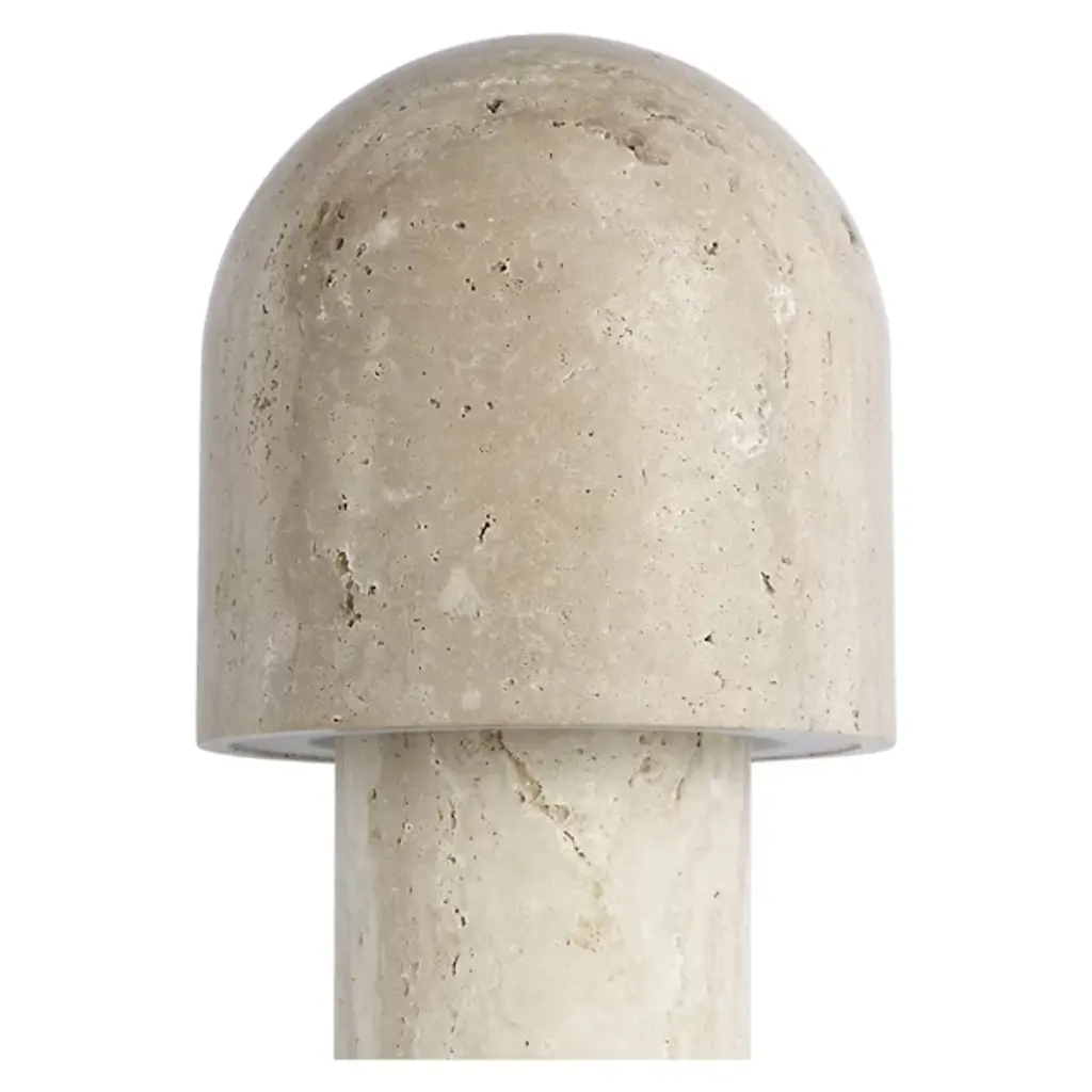 The Kennett LED Travertine Table Lamp from Visual Comfort Modern adds natural charm to contemporary spaces. It is designed by Sean Lavin, with a gently curved form that draws inspiration from a mushroom and features a travertine base and shade that adds unique texture and visual weight. A domed shade houses warm LED light, diffusing a soft, ambient glow perfect for creating a relaxed atmosphere. With influences from Mid-Century and Artisanal Modern design, it’s a smart choice for compact surfaces where thoughtful design makes a quiet statement.
