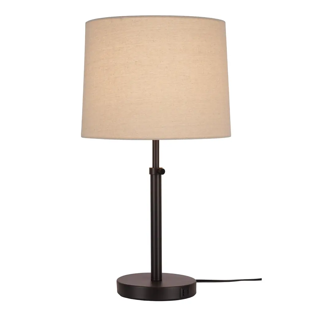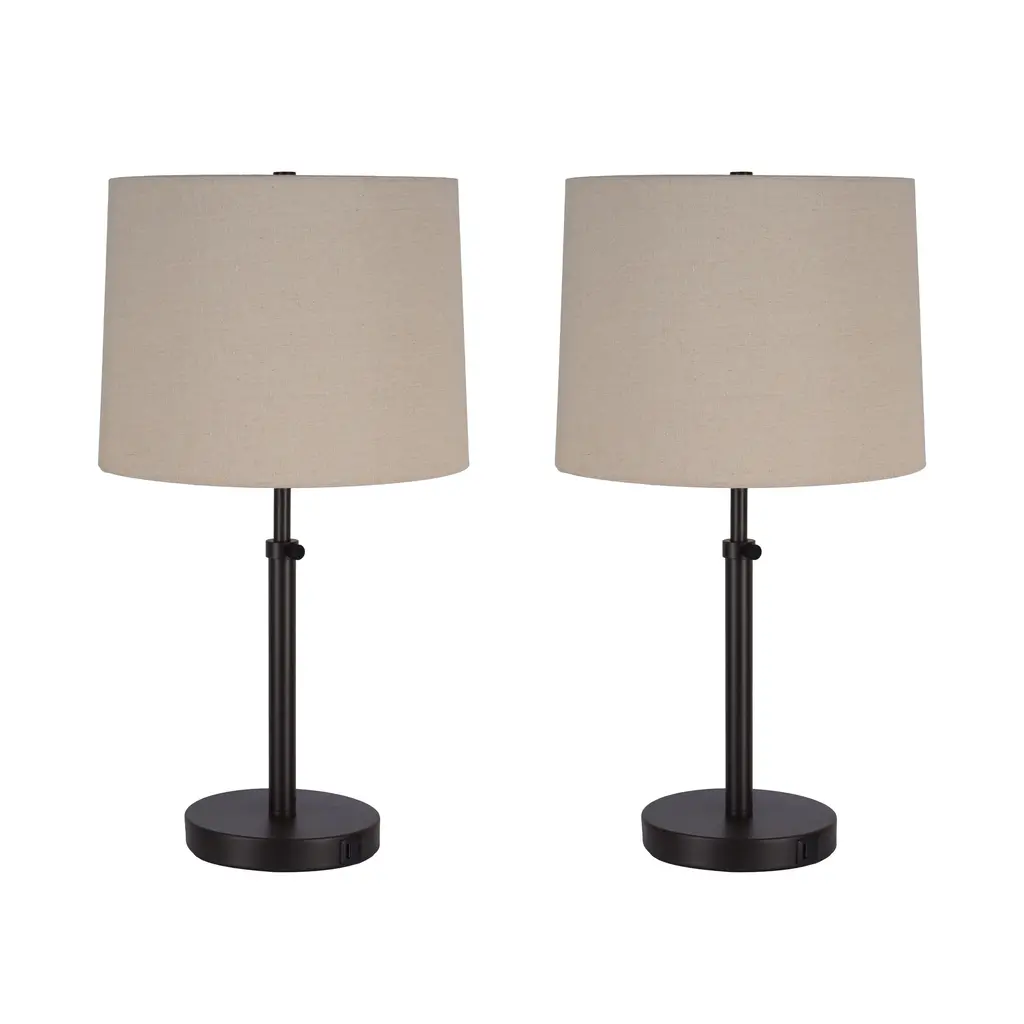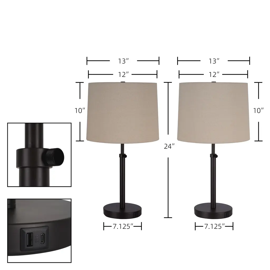 With minimalist clean design, this modern set of Kenroy Home Beckett Table Lamps feature a rich dark bronze finish and natural linen fabric shade for your contemporary living space. Each Beckett Lamp is full of functional features such as an adjustable height option to customize the size of your lamp. Each lamp includes a USB-A and USB-C charging ports, and includes energy saving LED lightbulbs. These lamps will allow you to charge your device while providing a beautiful aesthetic for your living room, bedroom or home office.