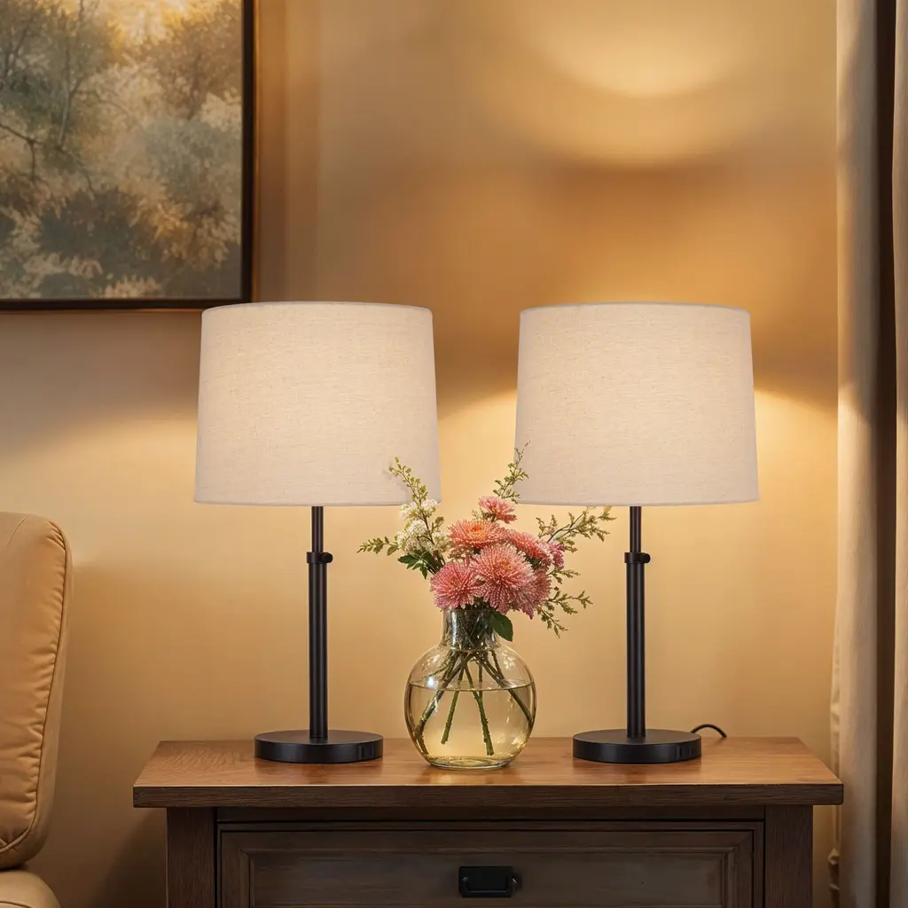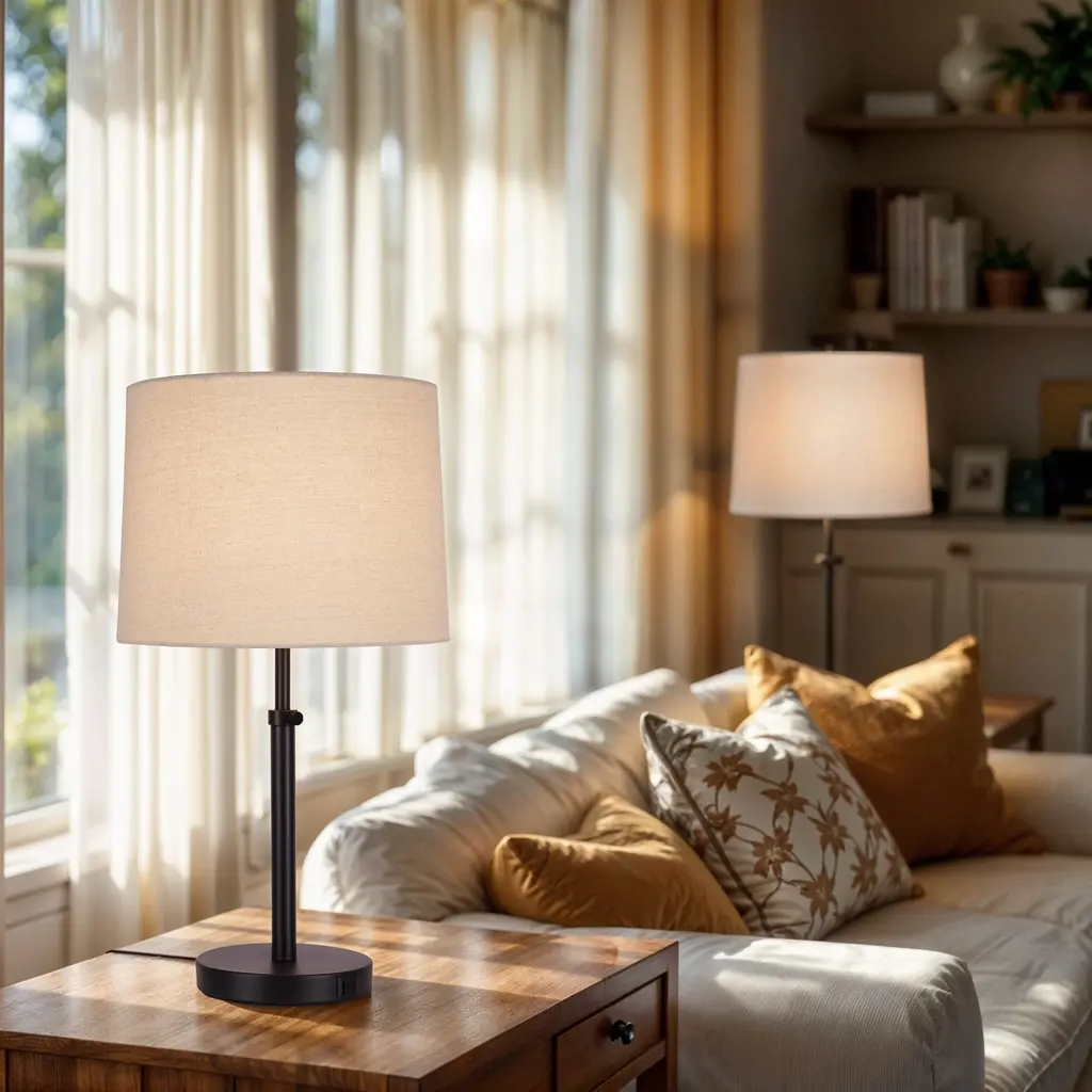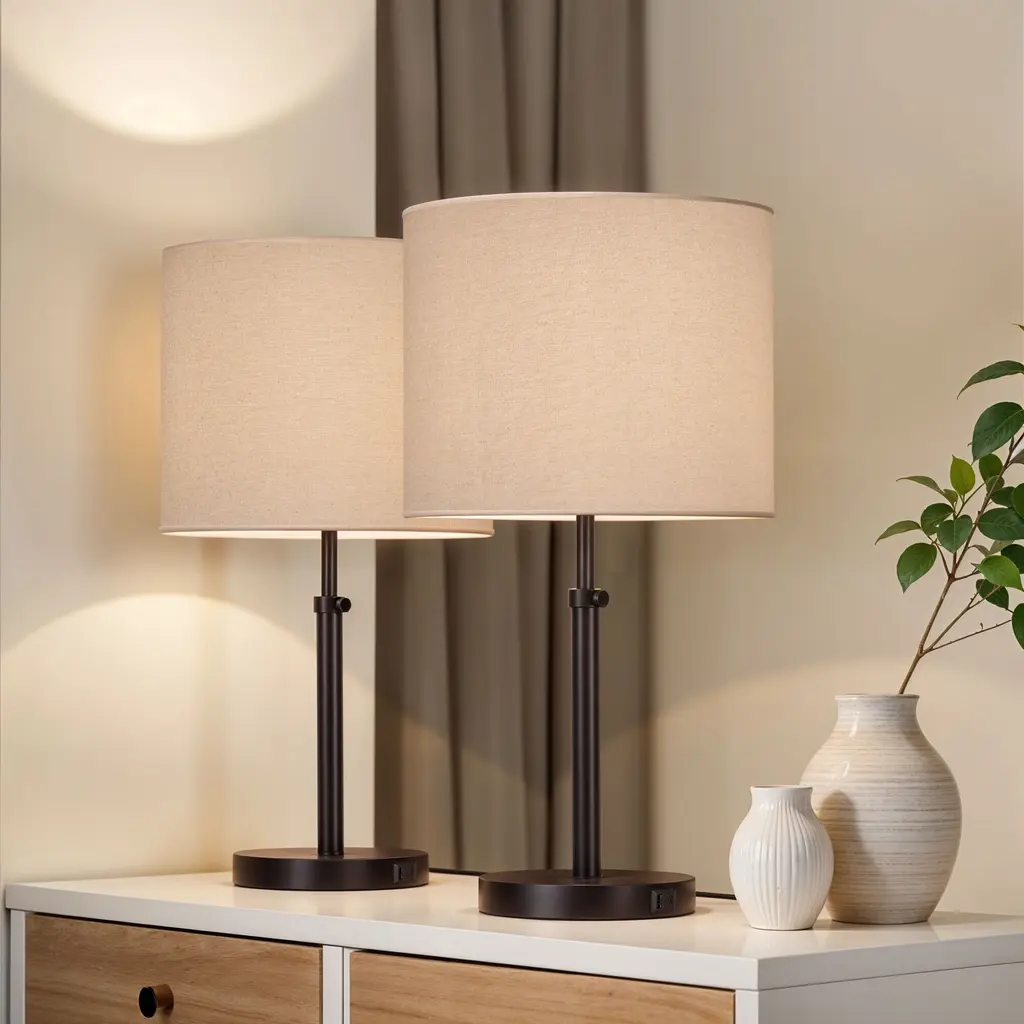 With minimalist clean design, this modern set of Kenroy Home Beckett Table Lamps feature a rich dark bronze finish and natural linen fabric shade for your contemporary living space. Each Beckett Lamp is full of functional features such as an adjustable height option to customize the size of your lamp. Each lamp includes a USB-A and USB-C charging ports, and includes energy saving LED lightbulbs. These lamps will allow you to charge your device while providing a beautiful aesthetic for your living room, bedroom or home office.